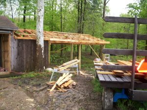 Another inch and a half of rain fell on Sunday and through last night. There will be no field work for quite awhile now. I am working on a sugarhouse addition for wood storage. It is coming along. The water is standing and the mud is all about, but the work progresses.