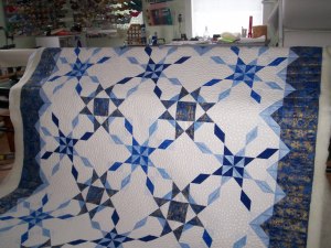 Connie made this quilt. She titled it “Winter Blooms Are Snow and Ice”. It was a prize winner. She made it last summer during the hot days, but thought about the warmth it would provide on a cold winter night.