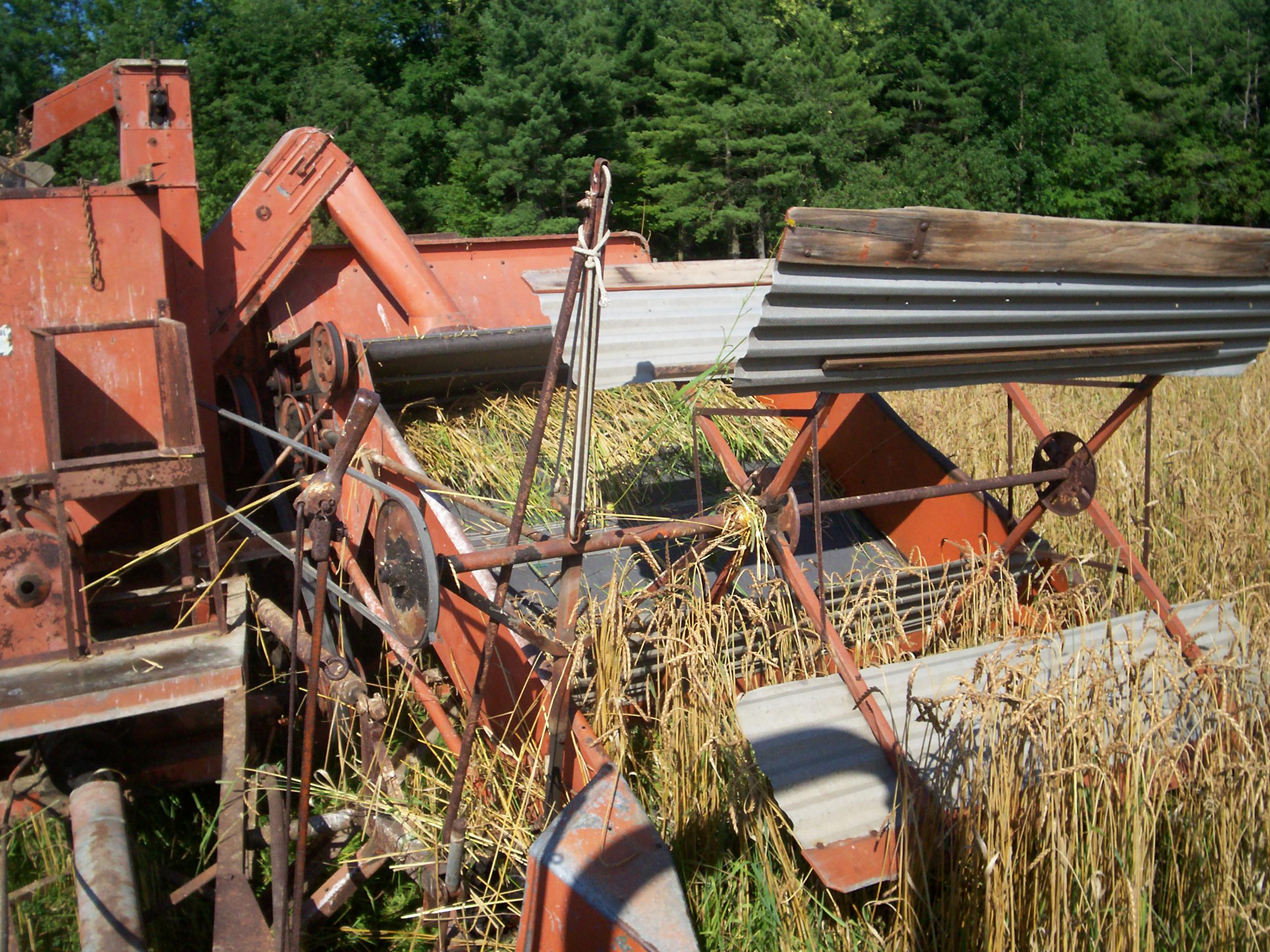 This old machine is a grand lady. She is probably as old as I am and still working good. She has been customized with the aluminum sheets on the grain reel, but other than that she is all original. I should probably restore her one day. Nobody makes these small farm combines anymore… It is a shame for small farmers like me.