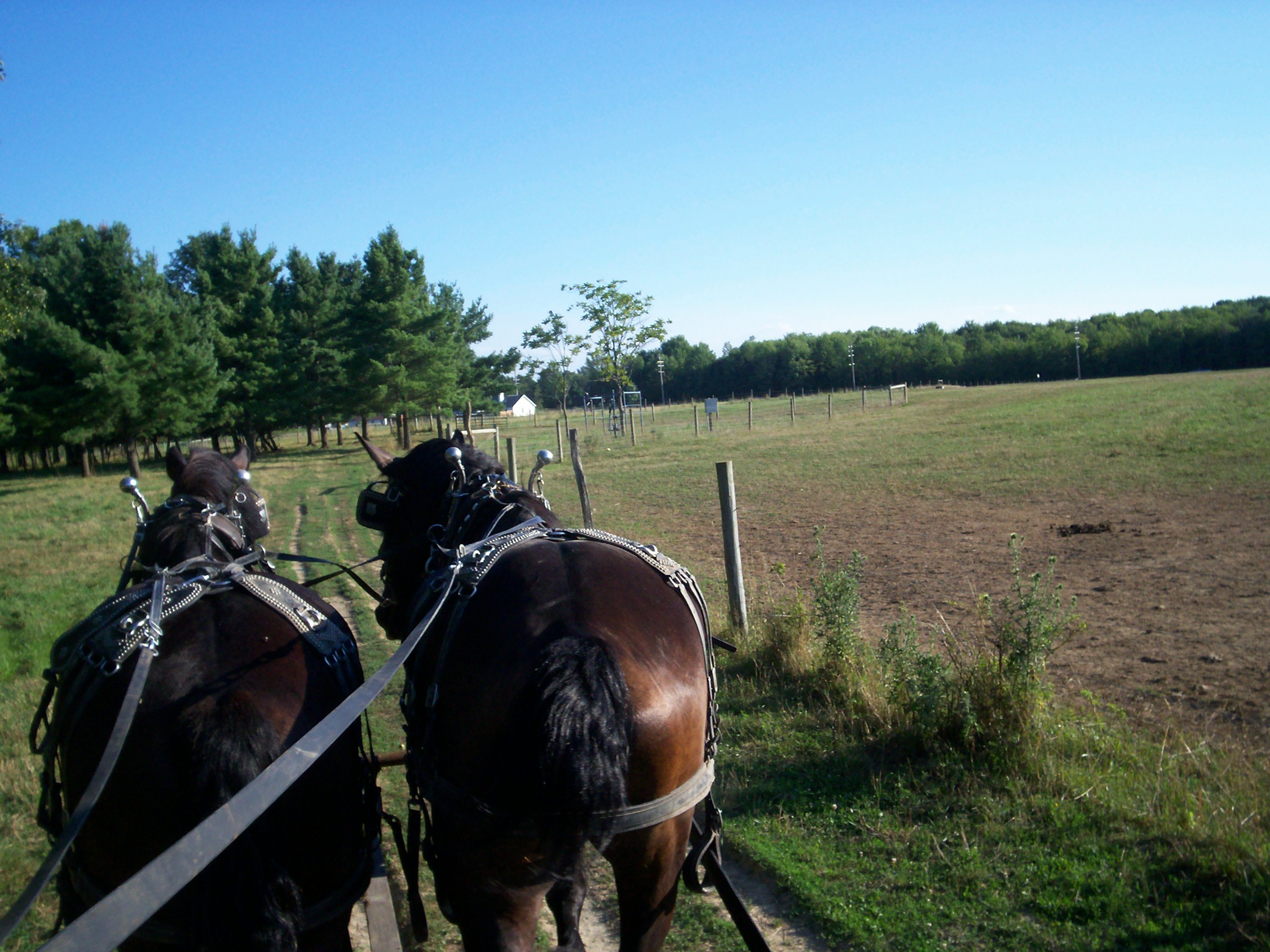 Knight and Hoss are walking down our farm lane, hauling a load of manure. It was a very cool evening much to our delight. The loaded spreader pulled easy on the dry, hard ground. The horses walked leisurely along as if there was no load at all. So it went, as we took crap from everyone!