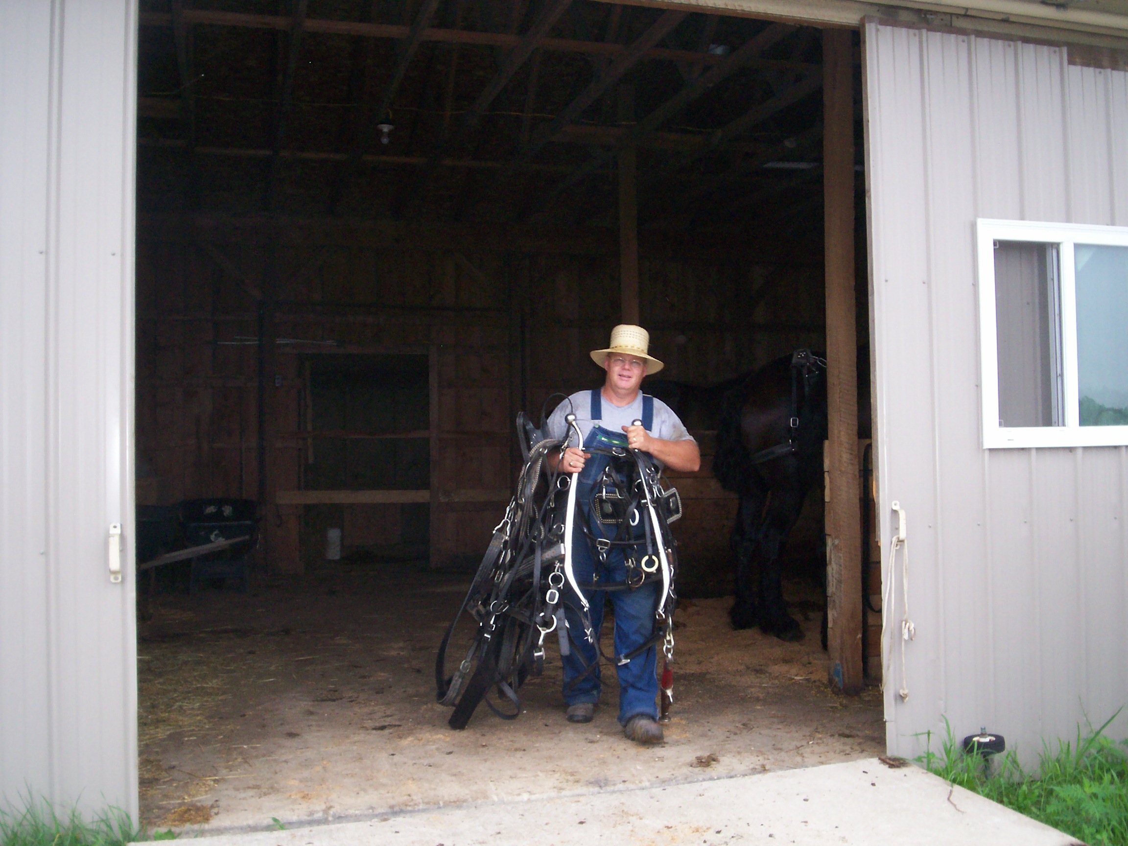 When the horse work is done for the day, the harnesses are taken off of the horses and put away. The horses are brushed, fed and watered. I take good care of my working partners. The rest of the chores are done once the horses are tended. I do it that way so the very last thing I do before going to the house, is to check the horses one more time and just breathe on them.