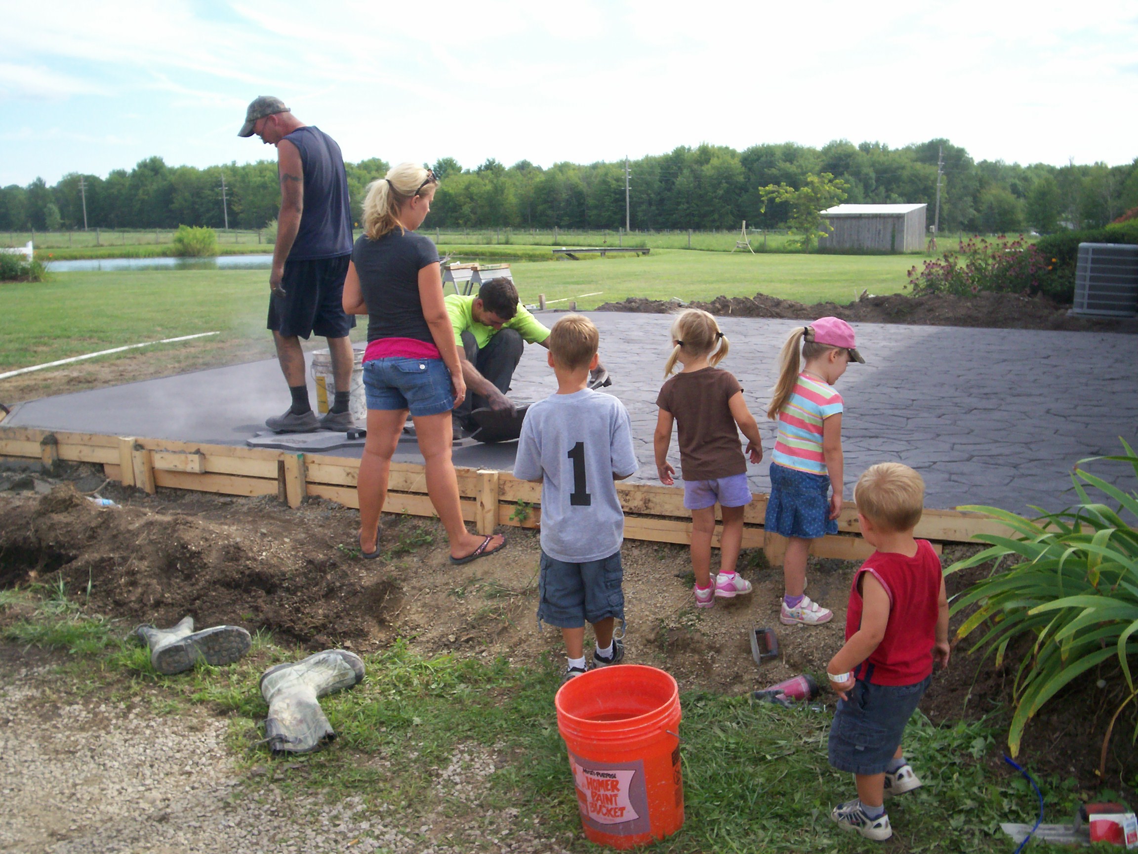 My son and his friend put our patio in. They stamped the concrete to look like flagstone. It went very well and looks nice. They had quite a bit of help from their children, but survived it anyway 😮