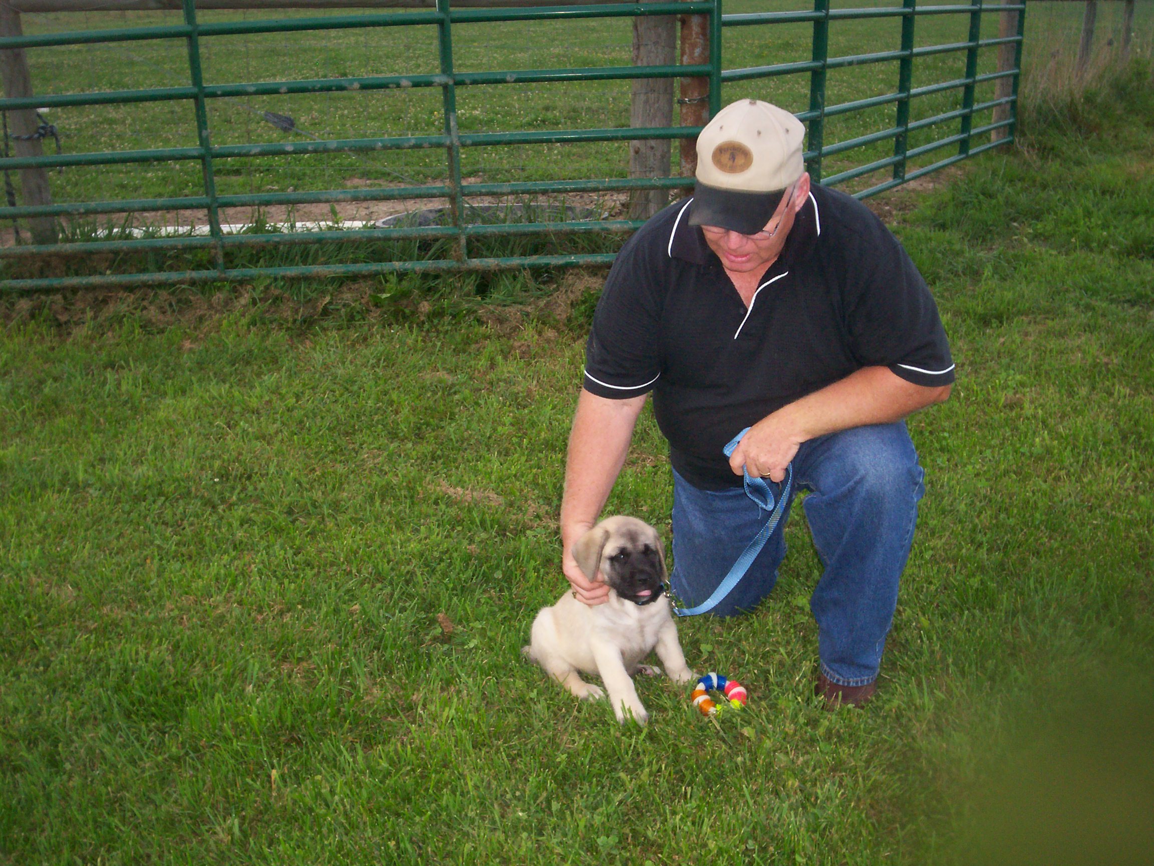 “King” came to us from breeders here in Ohio. The folks at Flying W Farms were very informative and helpful. We are now the proud owners of an American Mastiff. A blurb on their website says, “The Lion is to the cat, what the Mastiff is to the dog.” I can see exactly what they mean. These are some large, intelligent animals.