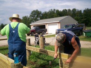 The day was beautiful. It was a little hot, but a breeze blew much of the time. My son and I constructed two large raised beds gardens. They measure 5 feet by 24 feet, by thirty inches deep. It will make gardening much easier in my advanced age. In the meantime, they will be home to our strawberry patch.