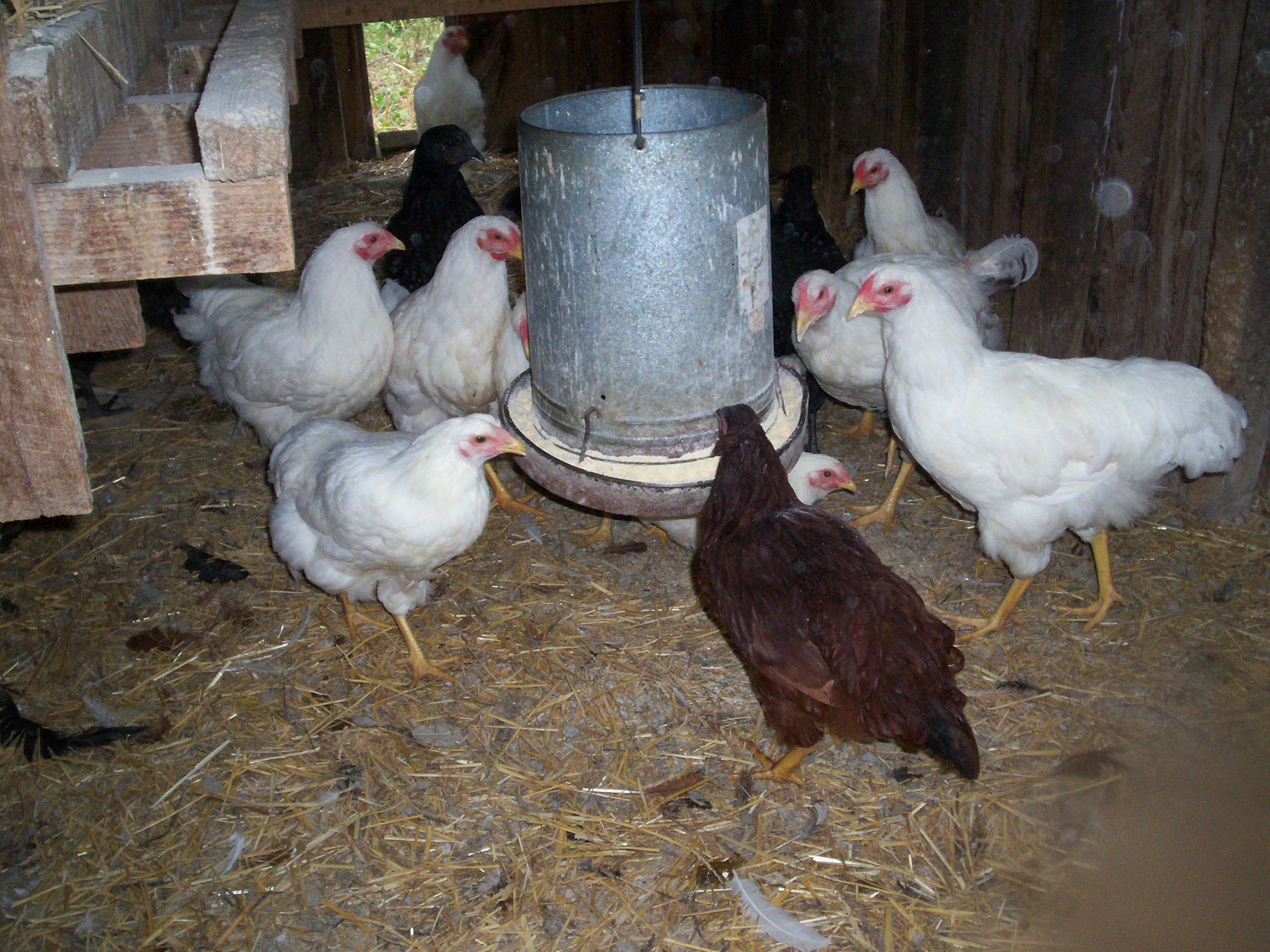 Our new flock is learning where the hen-house is, where the feed and water is and where to go to be safe at night. They will soon be free ranging around the barnyard and close pastures. I will see a big change in the feed consumed when they are able to go scratch and eat what they want. The feed I put out will only supplement them then, but for now it is their whole meal when ever they want it.