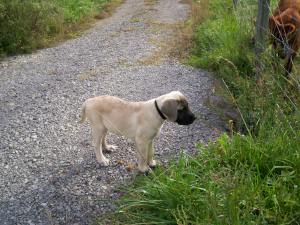 King keeps getting new experiences every day. Today he met the goats. We do our meetings in such a way that King is safe and the other animals are safe. He seems to take it all in stride. He is a very good puppy.