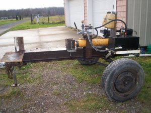 This is the beast of a log splitter than two friends and I built. It is a 50 ton splitter with a 32 inch stroke. It is mostly for splitting wood for the sugar house. The longer pieces will work nicely in the maple syrup firebox.