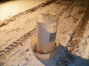 These feeders cost me only the price of the bolts. Even if I had to pay for the barrels and the wood, these would still make a very inexpensive feeder. I have had some in use for over a year now. They are durable, easy to clean and best of all … Cheap!