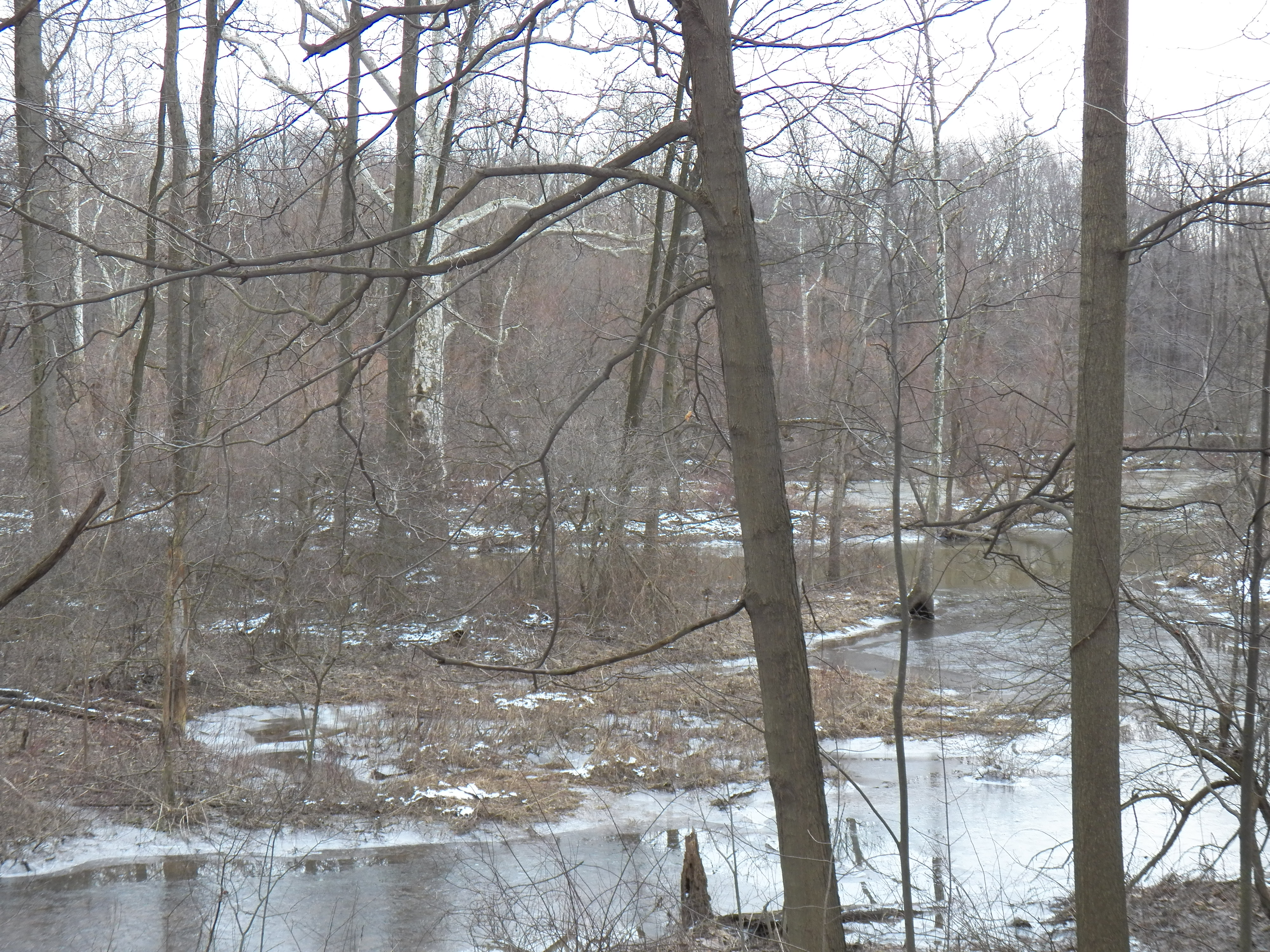 In the center of the photograph is a big white tree. It is a very old sycamore. Long before I was born, beavers must have chewed upon the tree. They damaged it down low causing a place for rot to take hold. The old tree stood on the bank of the creek where I surmise that a fire licked at its trunk and started the rotted place to burn out.