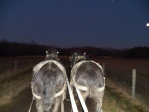 Just the other night, after a day of work with the horses, I took the new sap sled out to the sugarhouse, as our last job of the day. The moon was full and just coming up. It was a very nice ride. The weather was warmer than our usual February temperatures, so I just enjoyed myself.