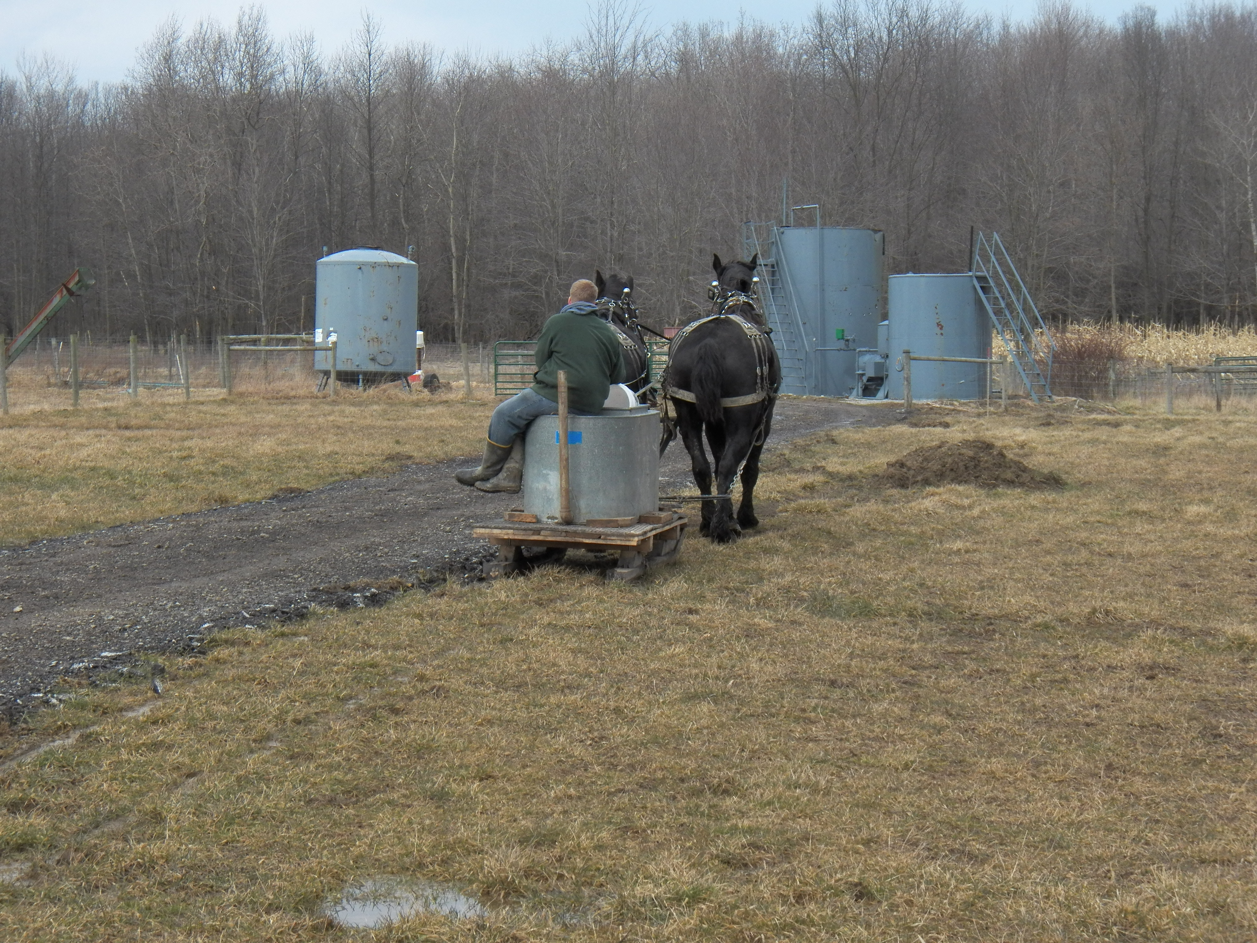 When we gather sap there is only the sound of nature, laughter and the small noises that the horses make. The harness jingles, the hoofbeats in the water and the sound of sap being poured into the tank are therapeutic for me. The laughter that comes from men working, at a job they enjoy, is peaceful music to the ears.