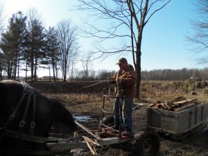 I try to remove trees to be sawed into boards for farm projects. I do occasionally sell some logs to lumber companies. The horses and I skid the wood out to a landing and then bid the logs out, selling to the highest bidder. I use the monies made to buy young seedlings, culvert pipe or other material needed to improve our woodlot.