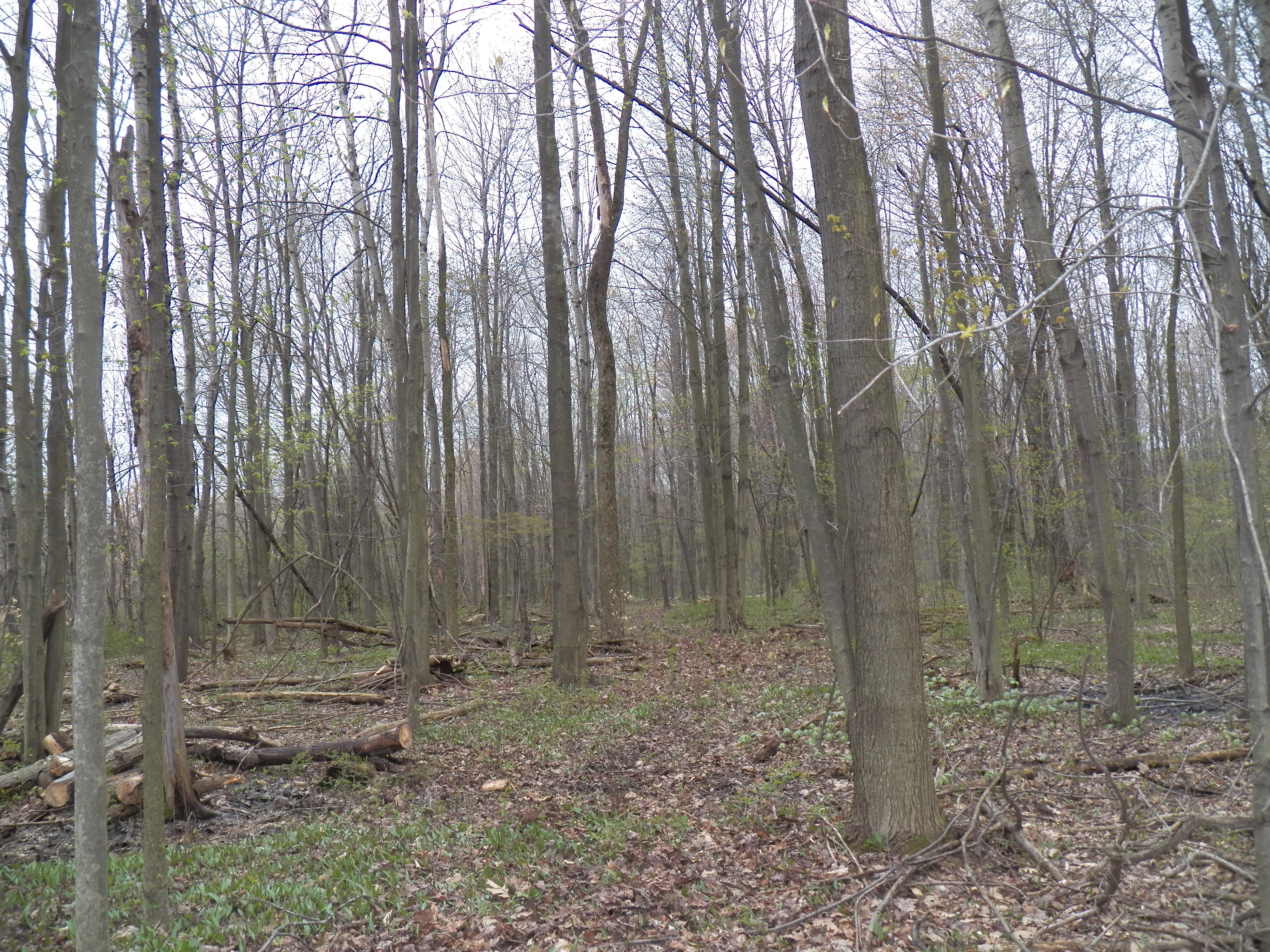 We have one more section to lay out. It will be in the last third of the woods and will be a long loop almost forming a circle. It will go through a stand of shagbark hickories, across a small woodland pasture and through a grove of maples. This diverse trail will take many hours to complete because of the different challenges along the way. I hope to have it completed by early autumn.