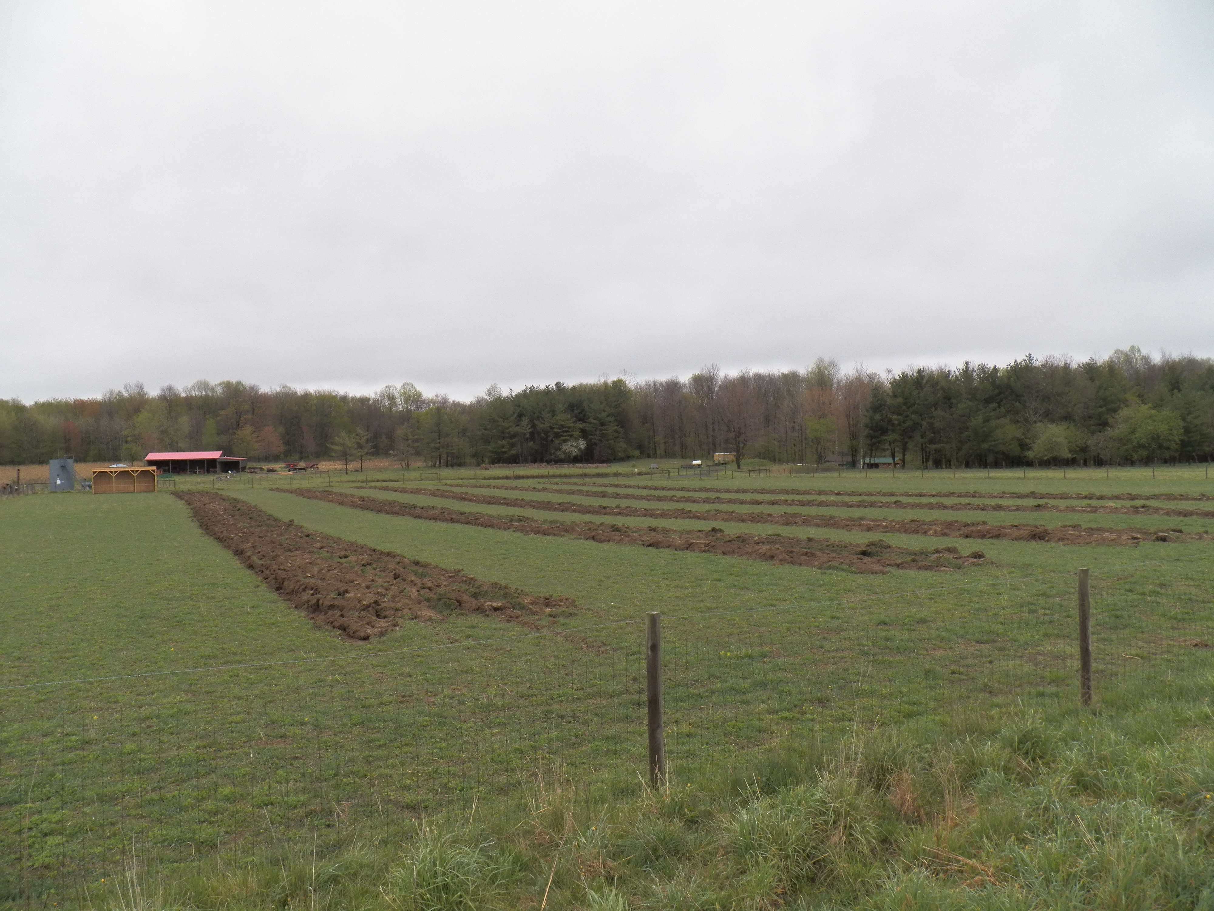 This is my first attempt to try this method. I have used the strips to grow food in of course, but I have not tried this planned, diversified approach to include the grazing animals. I hope that they will not only glean the garden plots, but will make efficient use of this entire field as a food plot.