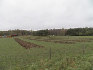 I have laid out a three and a half-acre field into the strips you see above. This field is where we will grow pumpkins, squash, some mid-season sweet corn and ornamental gourds. These crops will be planted in the plowed strips.