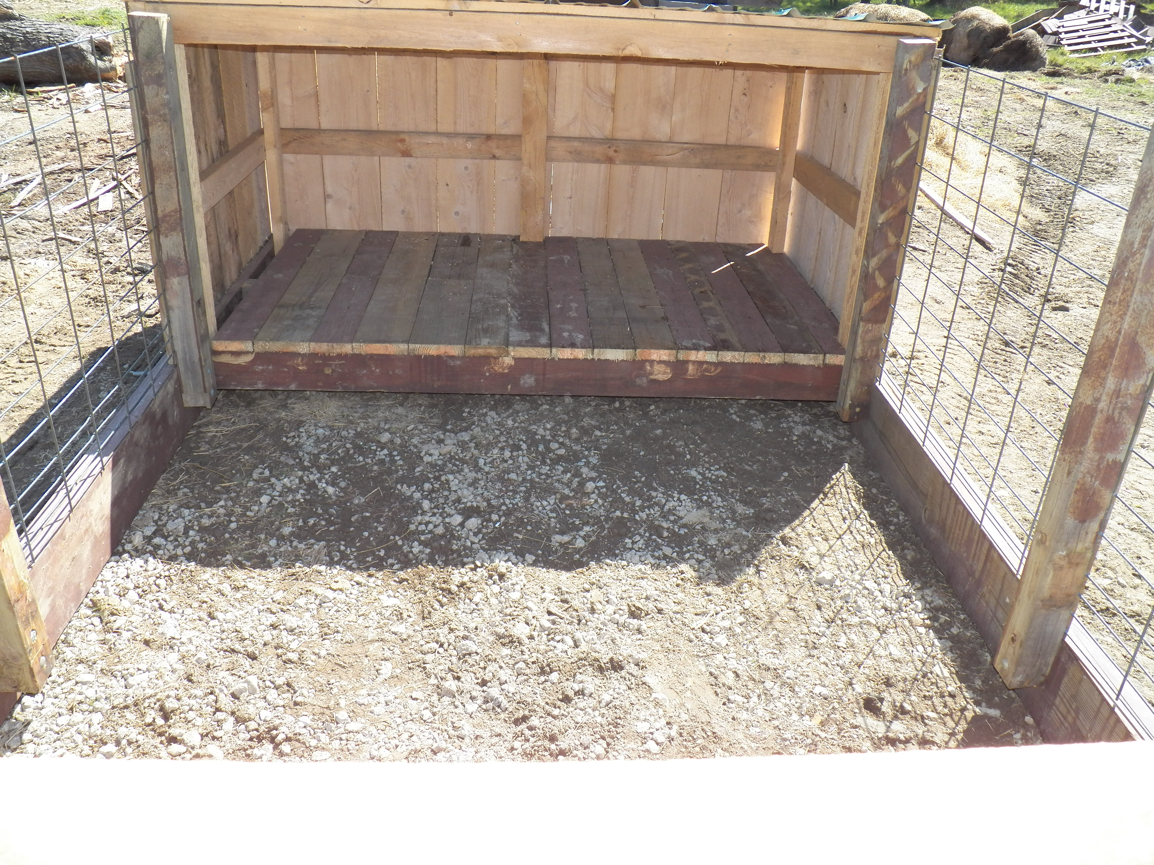 I will put pigs in this pen at the end of our garden. They can dig and poop and play. I will move the pen back and forth allowing the pigs to “plow” all they want. I will add straw, greens and shelled corn to get them to dig even more.