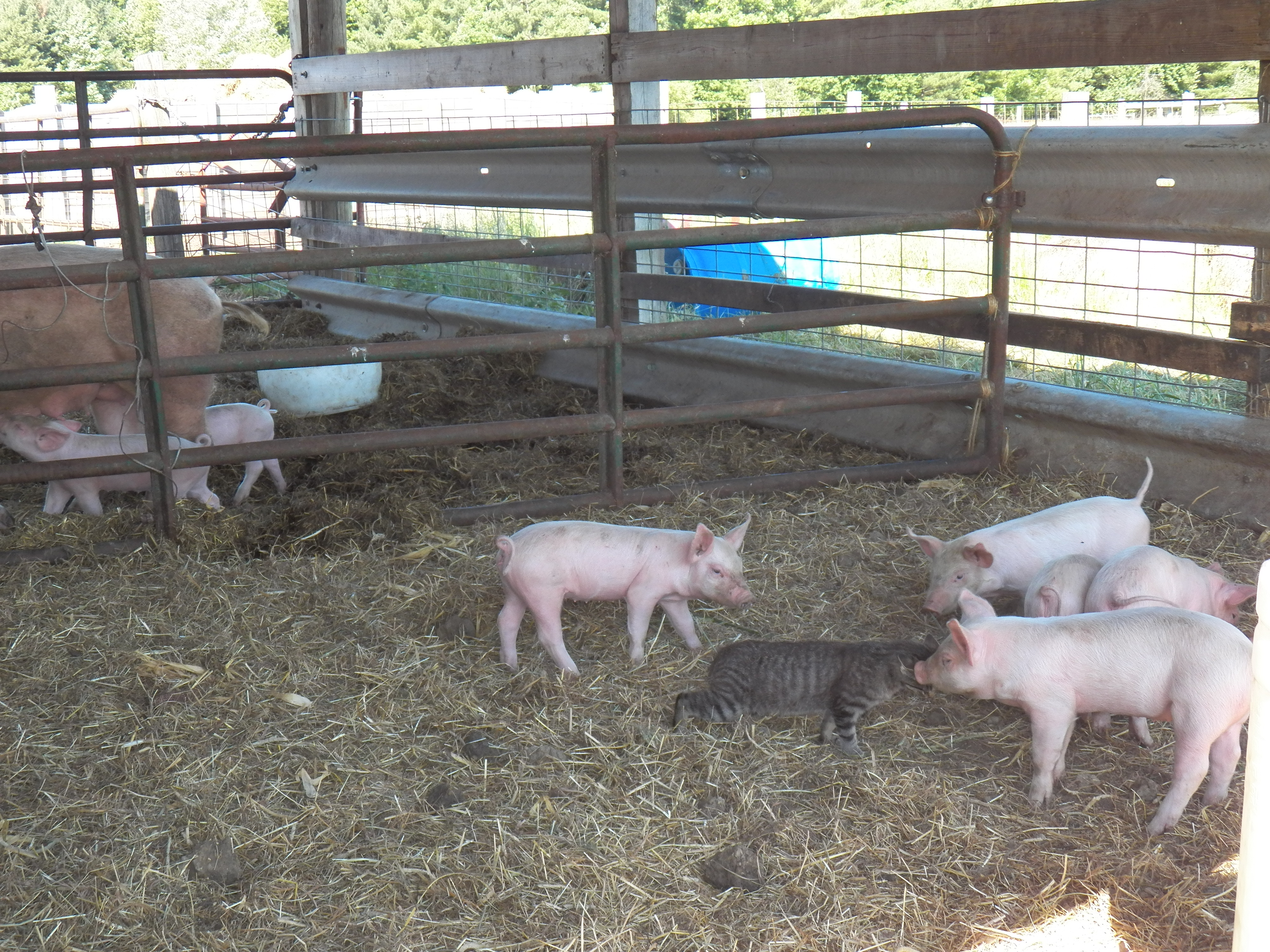 Yesterday, our cat spent quite a while making friends with the new litter of piglets. It was comical as the strange bed fellows played in the straw. The piglets didn’t hurt the cat, who seemed to enjoy all the attention.