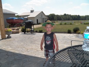 I talked my grandson into wearing a straw hat. I told him it would keep him cooler and better still, it would keep the flies off his face. I told him that when you are working, those pesky flies make it worse. He told me , “It’s too hot to work today pa-pa!” There, that proves it… even my three-year old grandson is smarter than my sister 😮