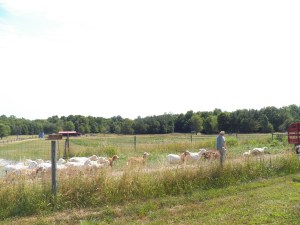 My ewes all know the drill by now, but the lambs are just learning. It is funny because , just like people, some do not like change! I have a group, led by a small black ewe, who are a rouge band of non-conformers. They scatter away from my delightful singing voice and head for the farthest corner of the pasture.