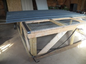 The other day, when we thought it was going to rain, we worked inside, building this movable pen for chickens. This style of pen is called a chicken tractor. I am not sure where the name came from, but they sure do work!