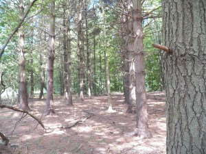 We have a few small white pine tree plantations on our farm. They were planted in the late 1950’s or early 1960’s. They were planted in rows by a machine coordinated with the Soil and Water Service. I think the government expected our hardwood forests to be waning, so by planting the white pine seedlings, a landowner would profit from the mature trees.