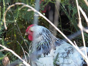 Our hens sure do enjoy the large two acre pasture that is their free range lot. They have the run of that whole pasture. Pumpkins and squash are growing there too. The hens hide in the tall weeds and grass in search of grasshoppers. They are having a grand time.