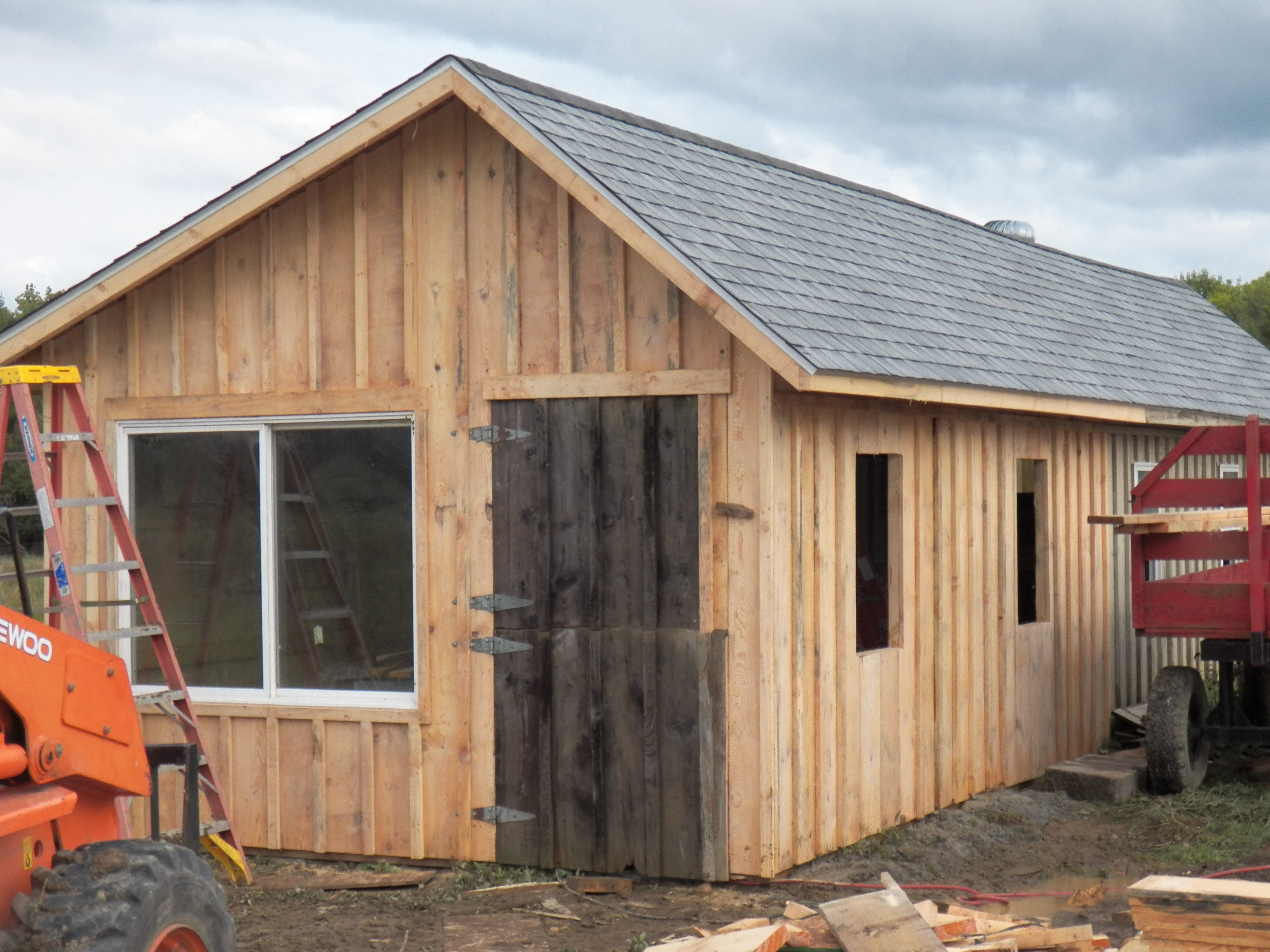 We put the rest of the siding on, installed the window and re-fitted the old door. We made needed repairs to the door, but put it right back on the end of the barn. It fit like a glove. The barn only waits for the ordered windows to come and be installed. I can finish that project in less than an hour.