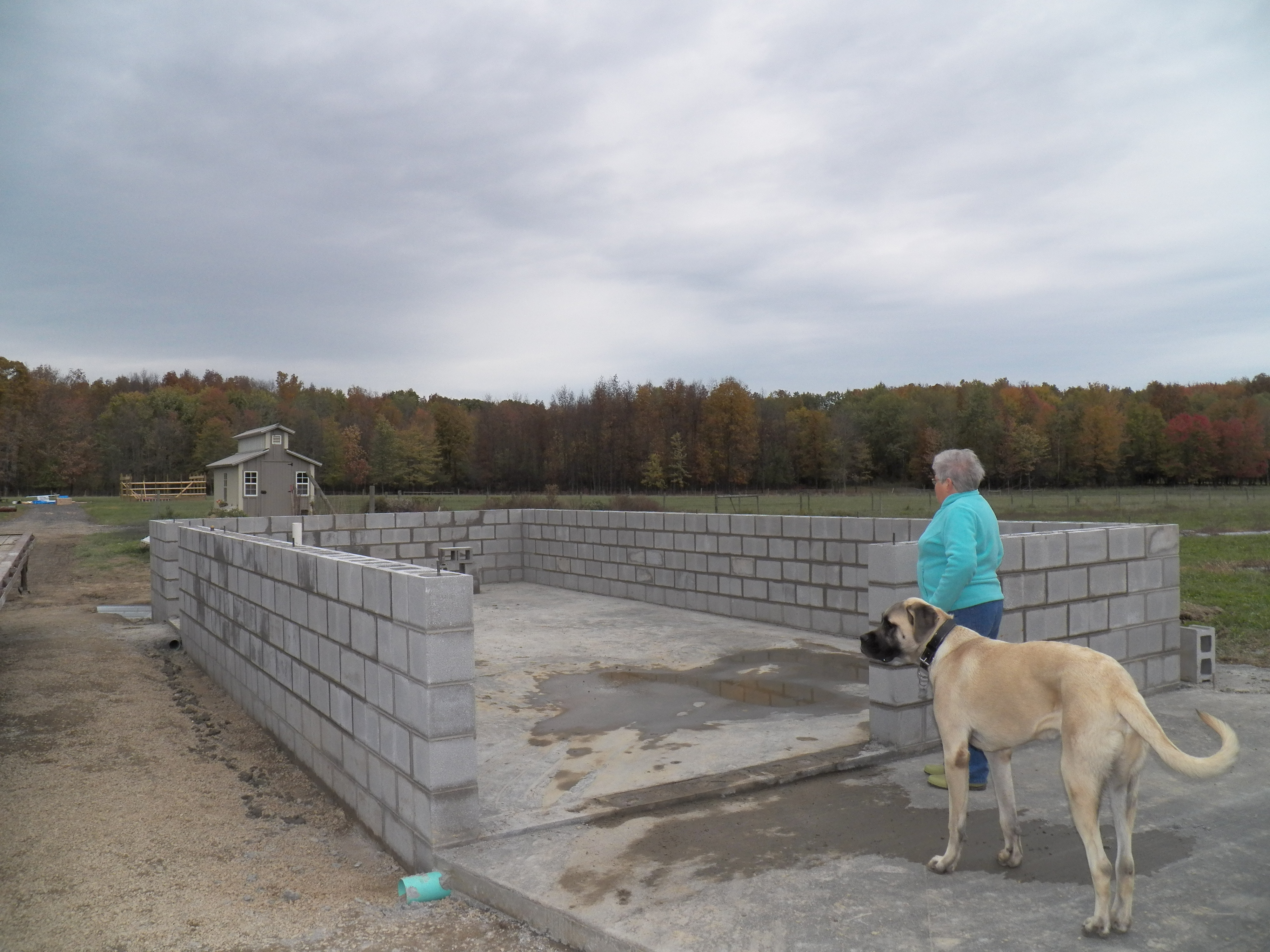 Yesterday we finished the block foundation of the wash-house. It went well, took a while, but was worth it 😮 Now, I must get my butt in gear to get it closed in before bad weather sets in for the year.