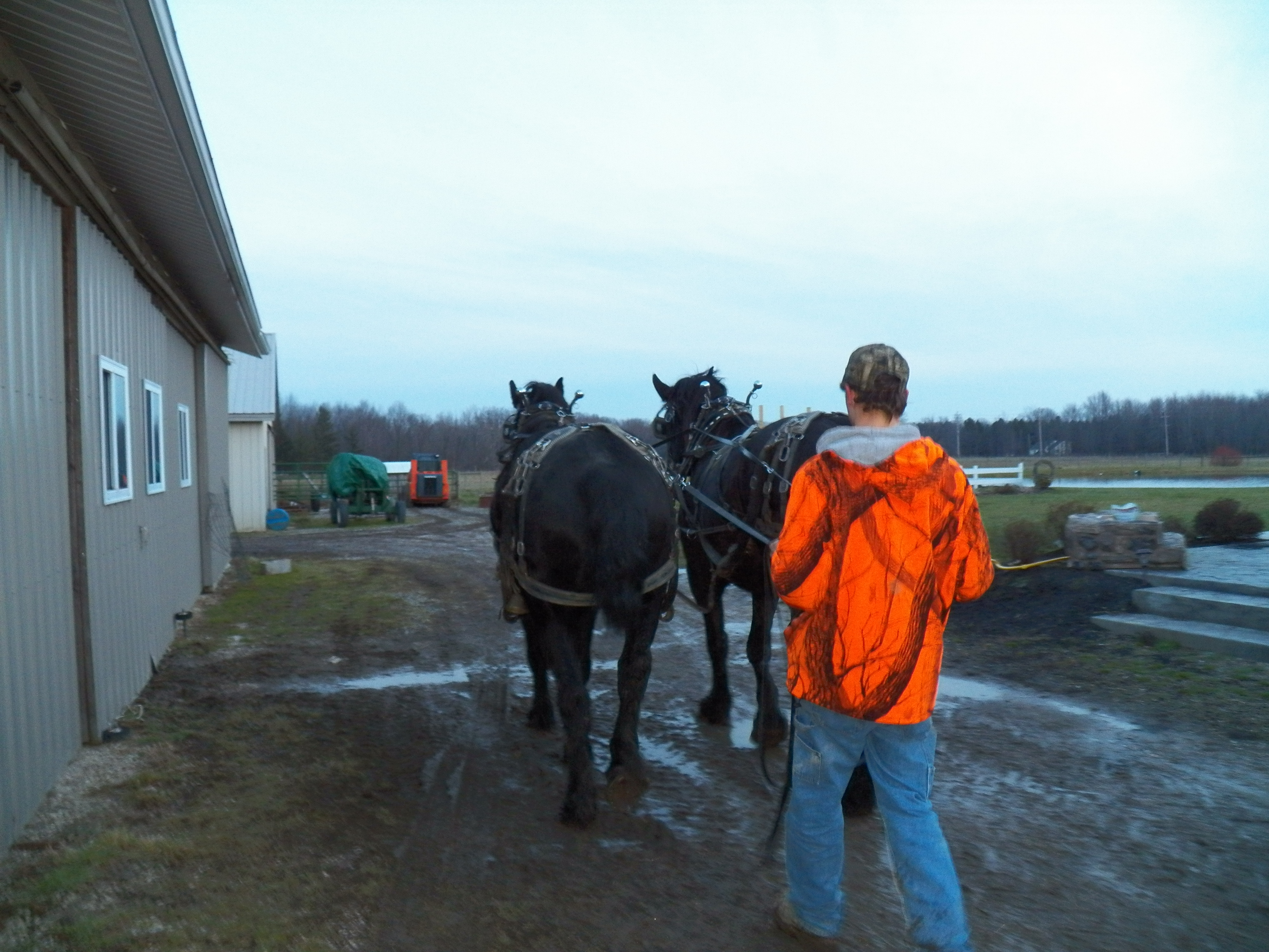 I could feel Justin’s nervousness when I handed him the lines for the first time, but after just a few yards I could see his confidence building. By the time we got to the barn , his chest was even sticking out a little. Yep, he’s hooked on draft horses 😮