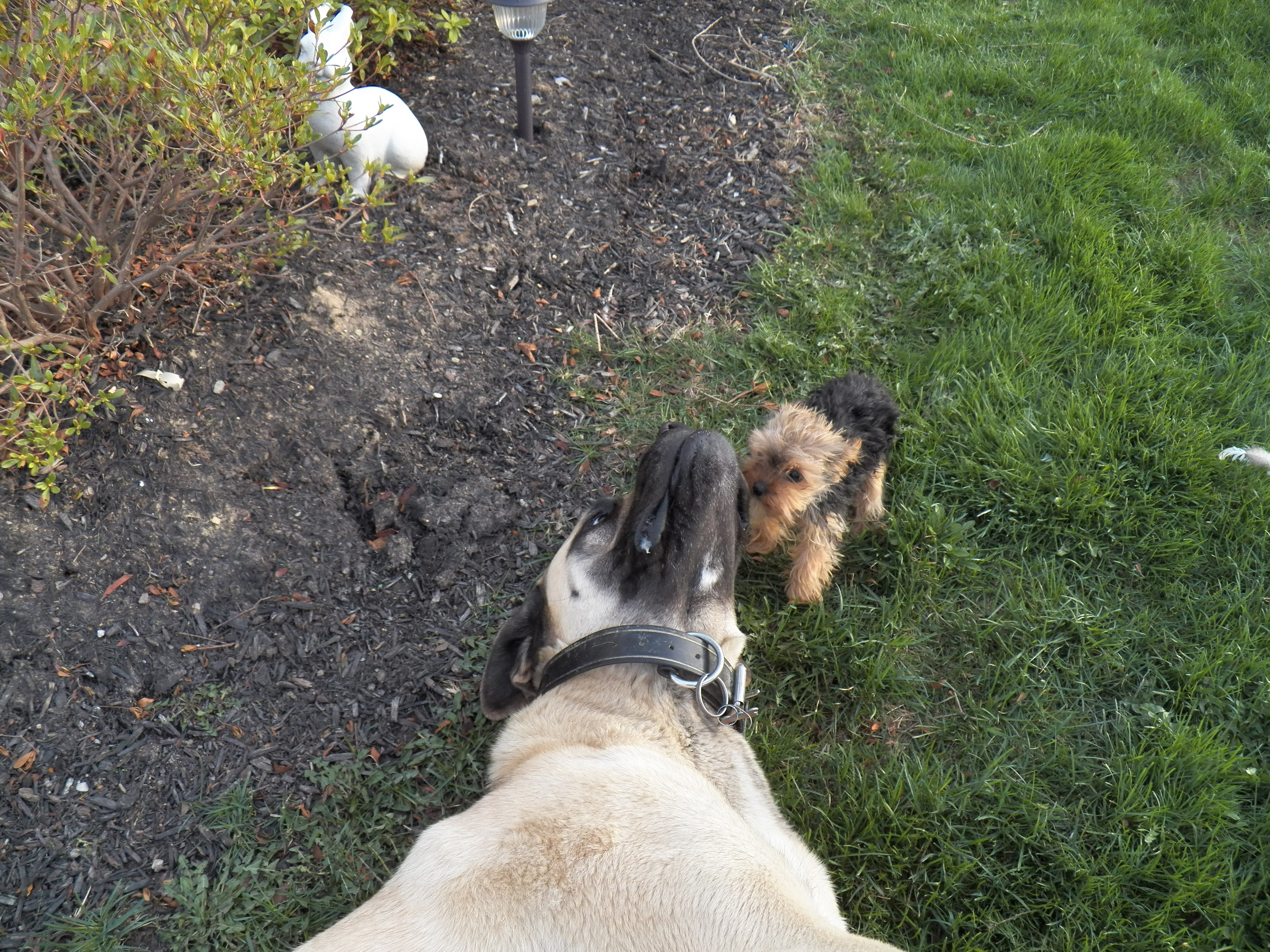 King tolerates all of my animals, Chloe is no diferent. King knows she belongs here, so he gets along well with the miniature doggie… It’s a good thing too! It is a hoot watching the two of them. The little dog darts around on tiny legs, while King stands pretty still not wanting to step on her. His foot is half the size of her body 😮