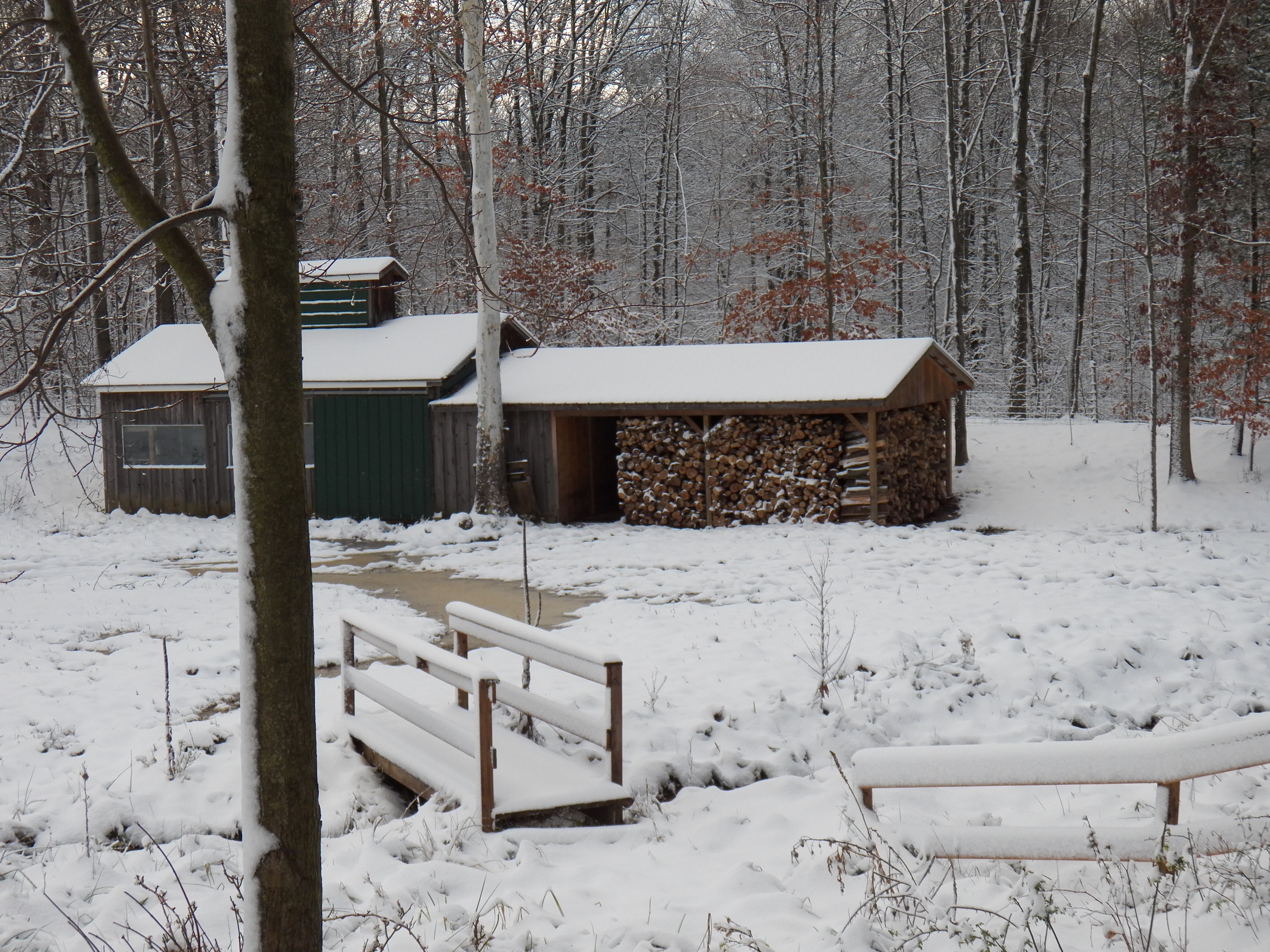 This morning, it is a true wonderland. It seems even sweeter, now that the wood is all put away. Talk about finishing up in the nick of time… it sure fits today 😮