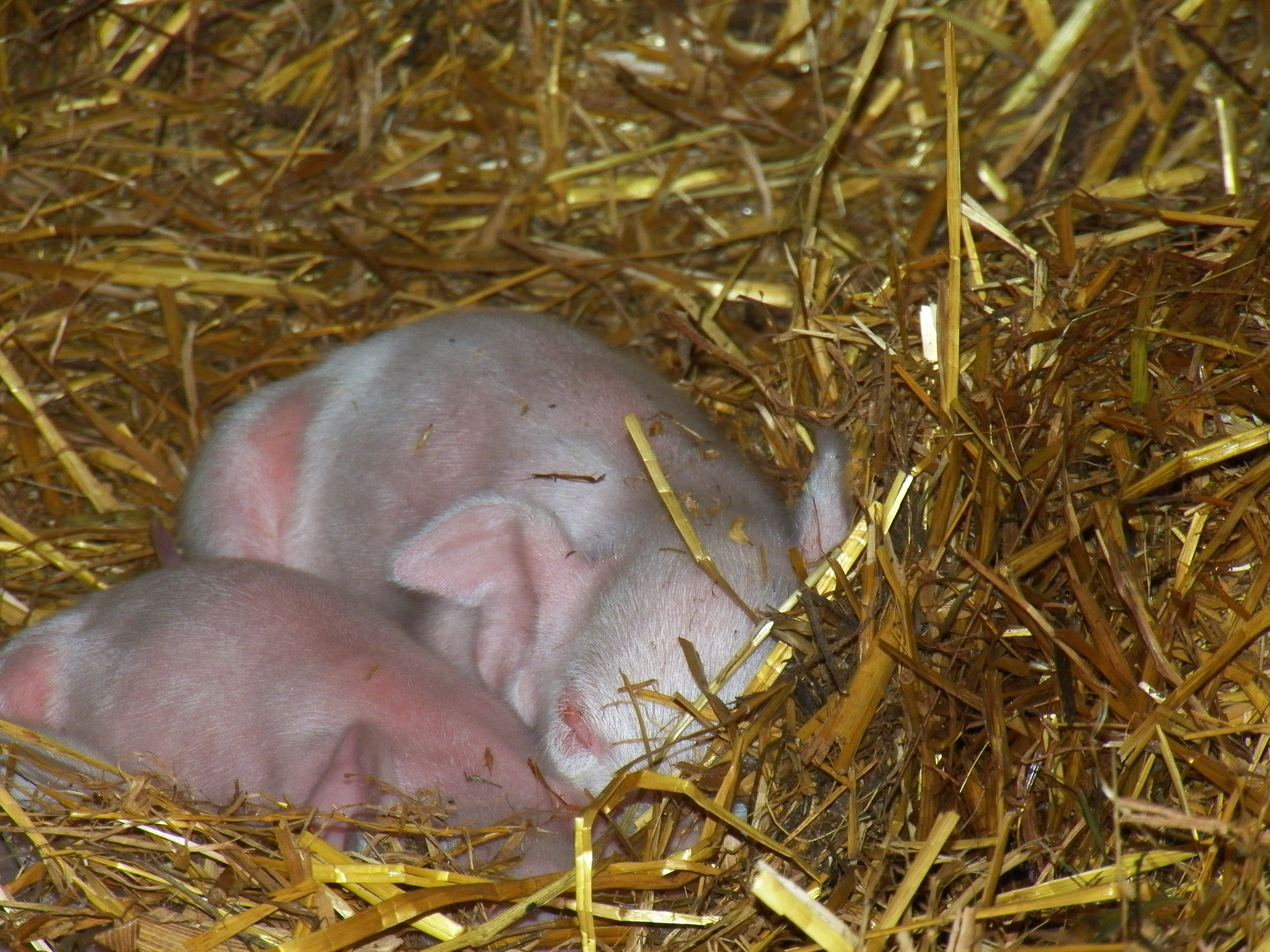 It makes me wonder where the saying , “quit hogging the covers”, comes from. In the photo, two piglets are cuddled down, but seven of their siblings are under the straw right next to them. Are these two hot? Or where they sleeping when the others stole the covers? 😮