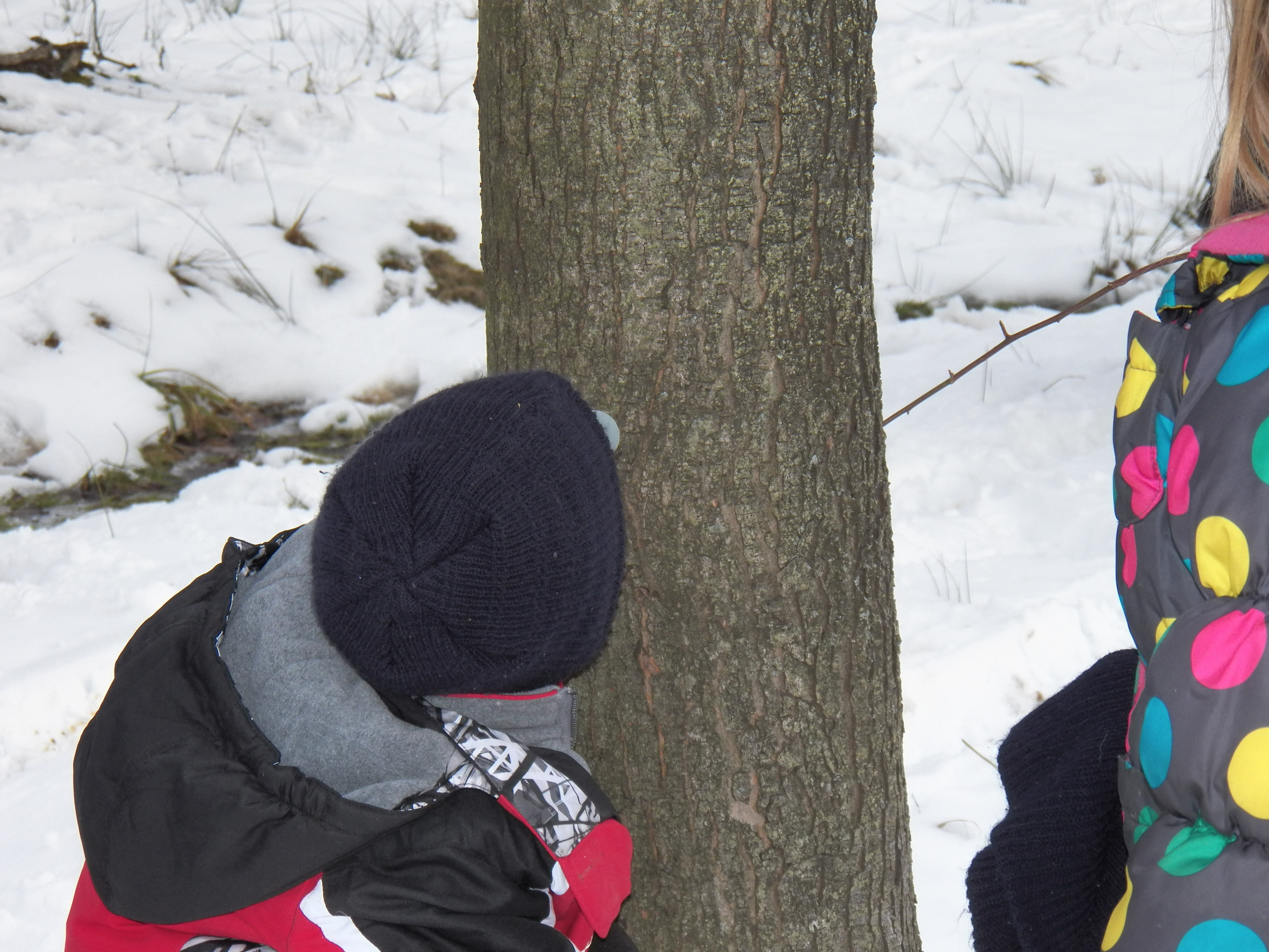 The snow is still deep in parts of the woods. The ground is even frozen quite hard in places. The east facing hillside has thawed enough to be a very slippery mud slide… I slid, but it was not graceful 😮