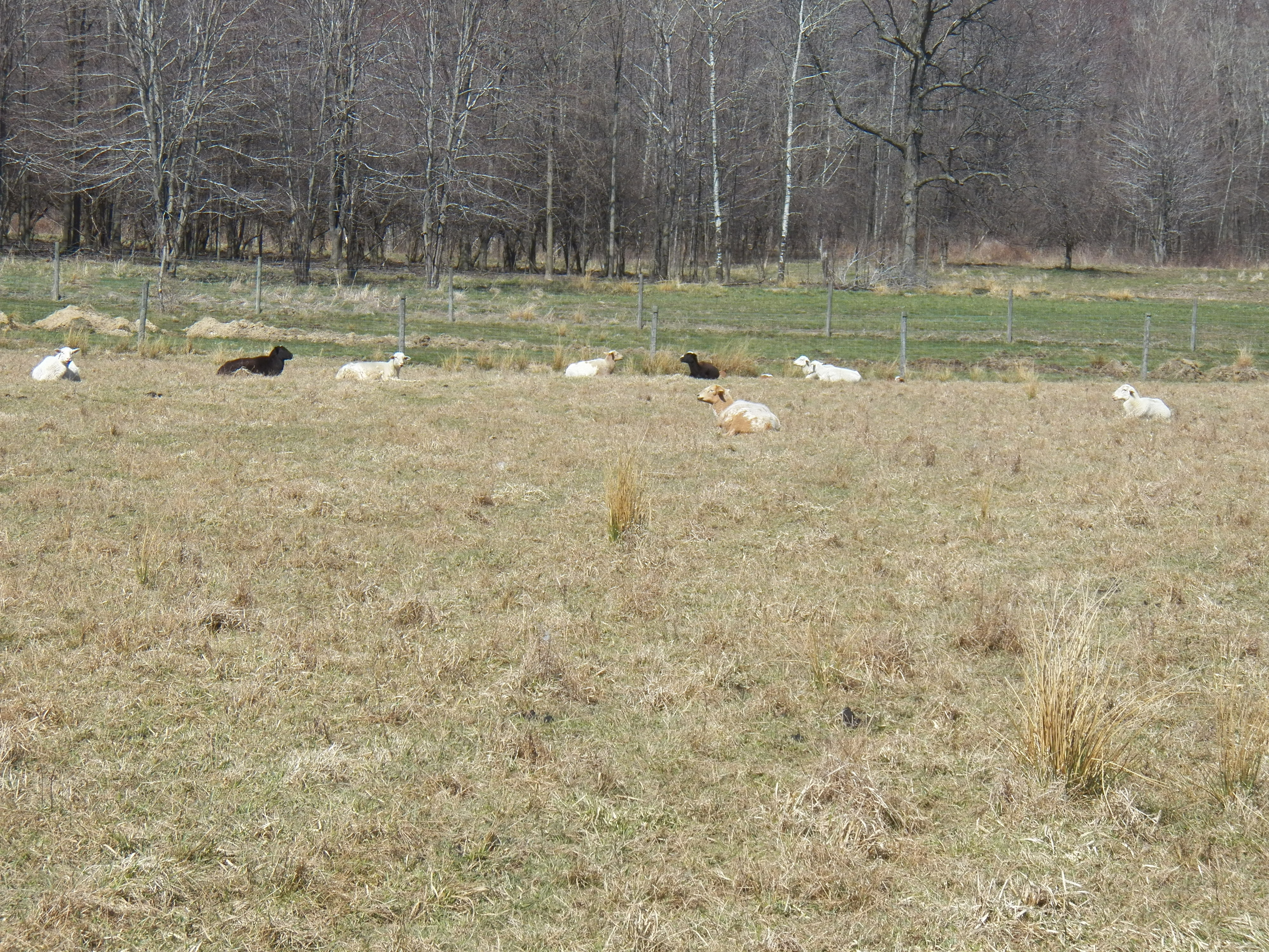 The ewes were all sleeping in this morning. They laid quietly, chewing their cud. The sun was warm upon their coats. I’m sure that it felt good, especially after such a long cold winter, to just soak up the warm sunshine.