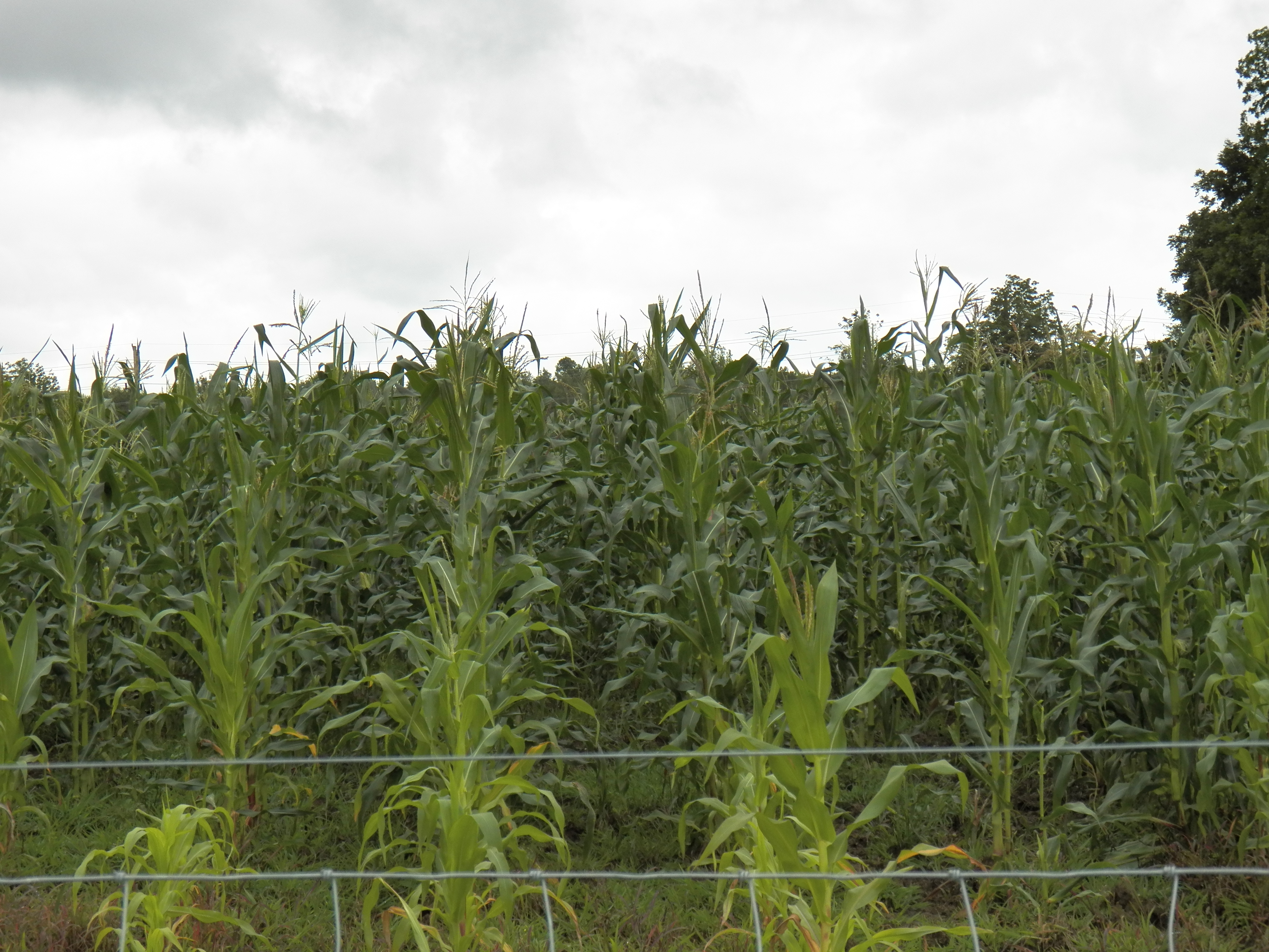 Our corn, planted June tenth, is doing well. Sure, there is better looking corn around, but my small field of open pollenated corn will feed our sow herd all winter. I am fine with that 😮 The fodder will also be used as a snack for the cows once the ears have been picked and stored.