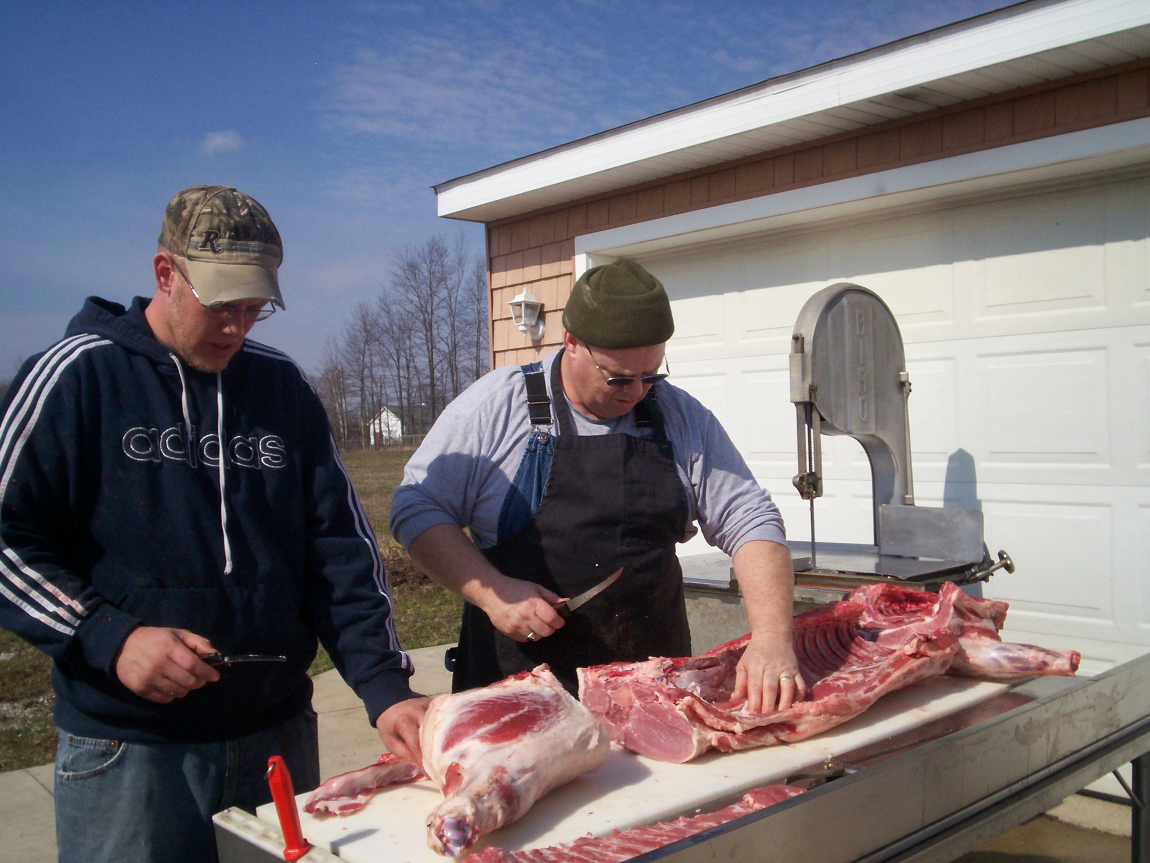December temperatures continue to be unseasonably warm. It is still cool enough for butchering and a nice day to keep fingers warm. The pause from farm work and wood chopping is a welcomed one. I like to do this job every now and then. It was once the way I made my living and fed my family. Now, it is just a job I like to do and ultimately… I’m still feeding my family 😮