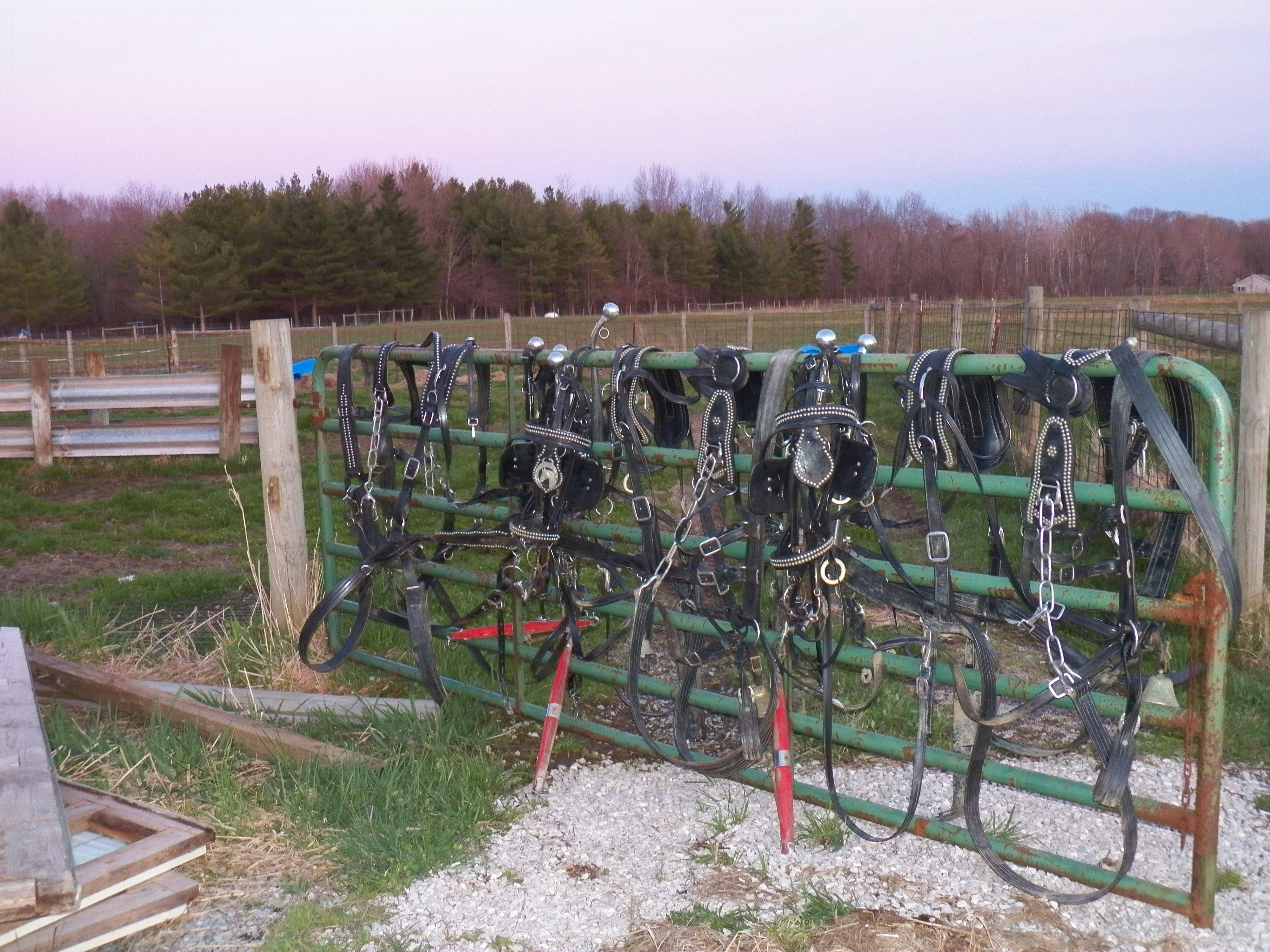 What a beautiful day we had today. It was 70 degrees F, sunny and wonderful. The grass is getting greener by the day. It was a great day to enjoy. We washed the horse’s harnesses today. After slogging through mud while gathering maple sap, the harnesses were covered in the stuff to say the least. This is one awesome positive about my bio-plastic harness. Unlike like the heavy leather ones I had for years, these can be pressure washed and made almost new. I am pleased with the results.