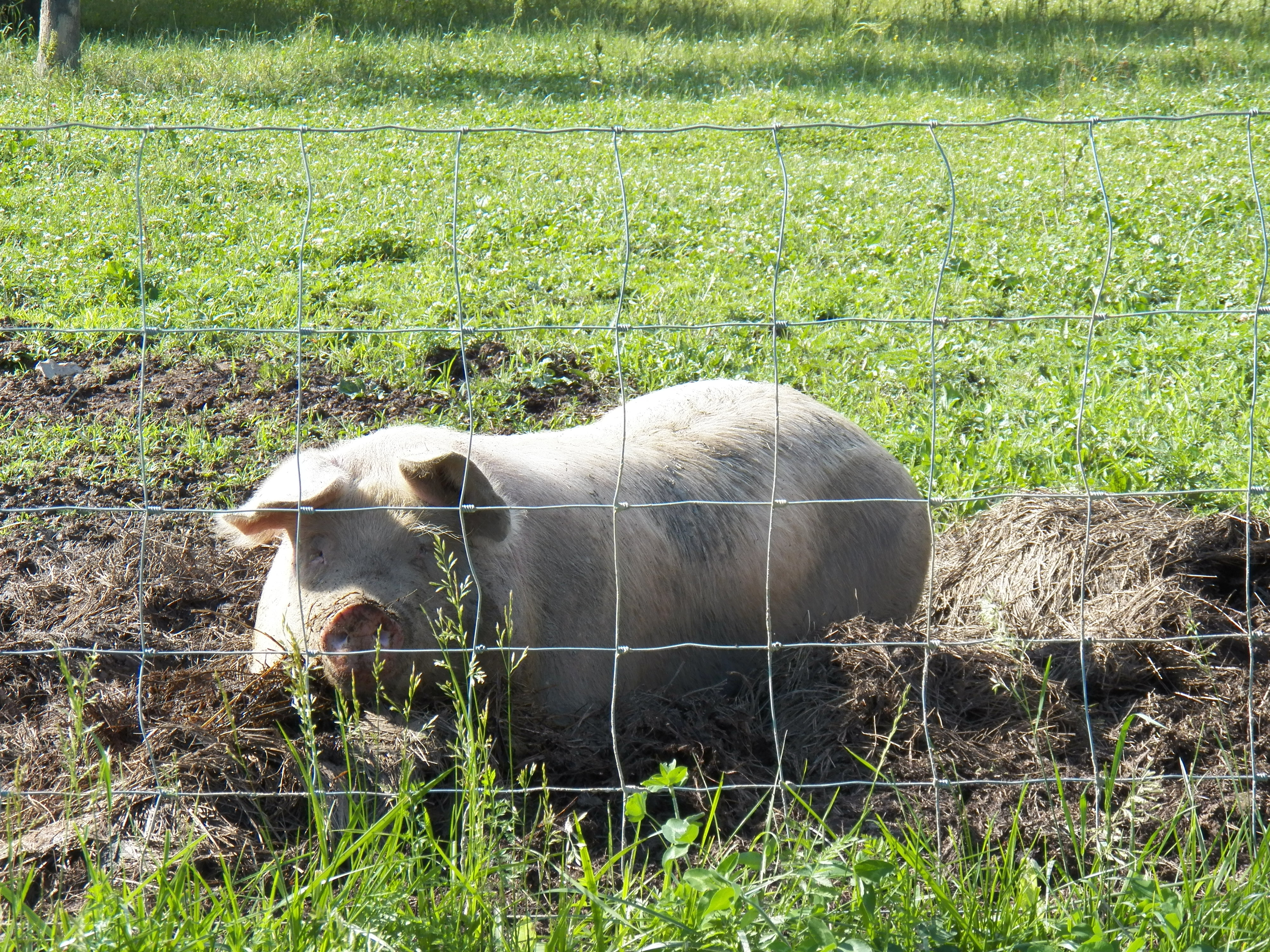 I want good healthy sows who give birth to strong healthy piglets. Keeping them in the manner that I do helps to insure this happens. The lack of stress, a clean place to play, eat and sleep also keeps my herd on the right track. I tried yoga once for them, but as close as I got was them all looking at my border collie through the fence… I guess it’s a pig’s version of “Downward facing dog”… 😮