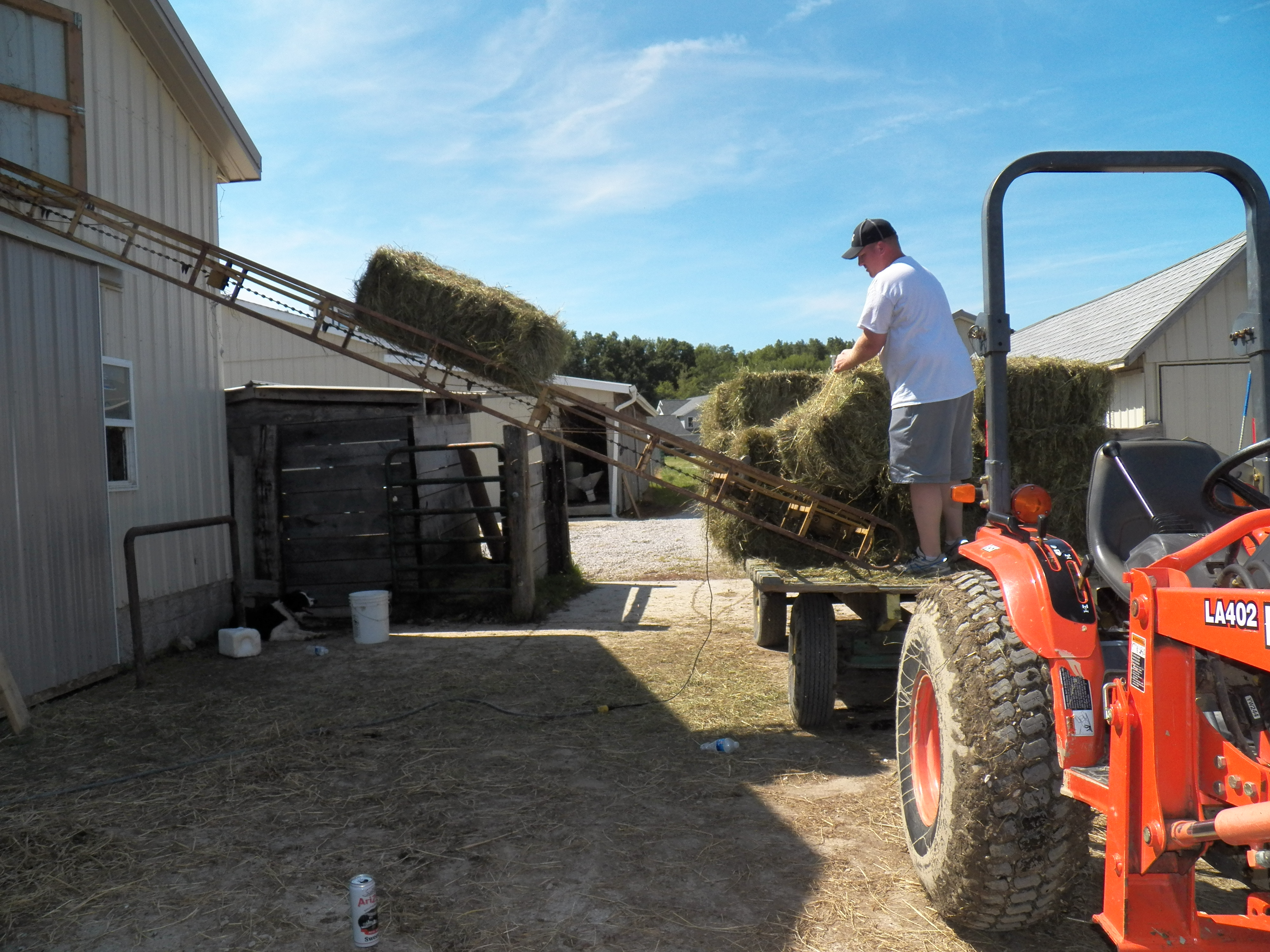 What a day! The weather looked rainy almost all day. It even sprinkled for about 3 minutes around 9:30, but the real rain never came. We almost gave up on doing hay, but like I said yesterday, I will keep looking forward and not skyward. It was the right thing to do.