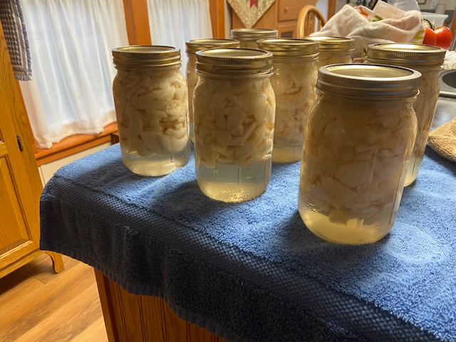 Our apple order came in last week. We are busy getting them put up. The eating part is wonderful, but I look forward to pies and applesauce. It makes for a few long days in the kitchen, but it is well worth it! I pitch in quite a bit. My wife even praises me, telling me she wonders how she ever got along without me…telling her how to do everything!
