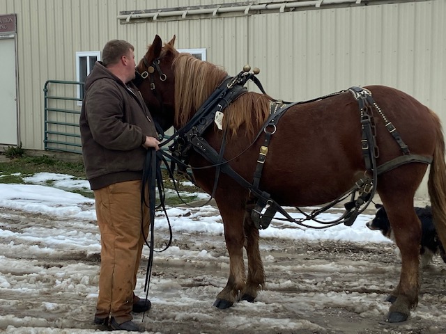 Later in the day, our son Jake came by driving his yearling for the first time. She did great. He was all smiles too. I watched them walk up and down the driveway, as I cleaned the pig pens and horse stable. When he put the yearling “Anna” away, he was soon dashing through the snow with his horse “Belle”. That scene was made sweeter because he was pulling his kids behind him in a sled. They swooped around the farm lane and made a pass near mom’s resting place. The laughter was easy to hear as it echoed off the snow. It truly was a beautiful day…from beginning to end.