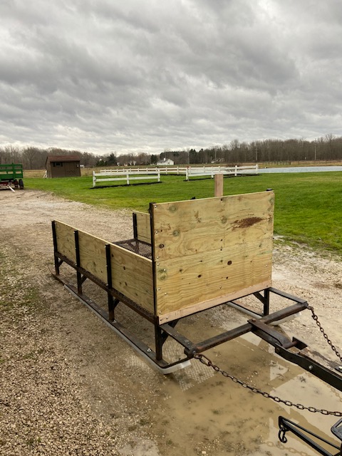 The sled is a “Pioneer” style, with a steel frame, including the runners. I added the chains in front for times when the sled needs help staying in place. The ones in the picture need to be just a bit longer to allow for a more sweeping turn. We also added high density plastic to the runners to increase the sliding efficiency of the sled. I will use this for general purpose stuff like hauling wood, bales and children.