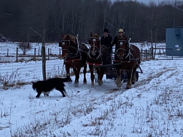 It is hard to believe that today is the last day of January 2021. It has been a full month. Our Christmas gatherings were pushed into this month as we celebrated in small groups. We, of course, had lots of chores and work to do, but we found plenty of time for some fun too. In the photo above, Hank (in the center), got hitched with the mares for the first time. He did remarkably!