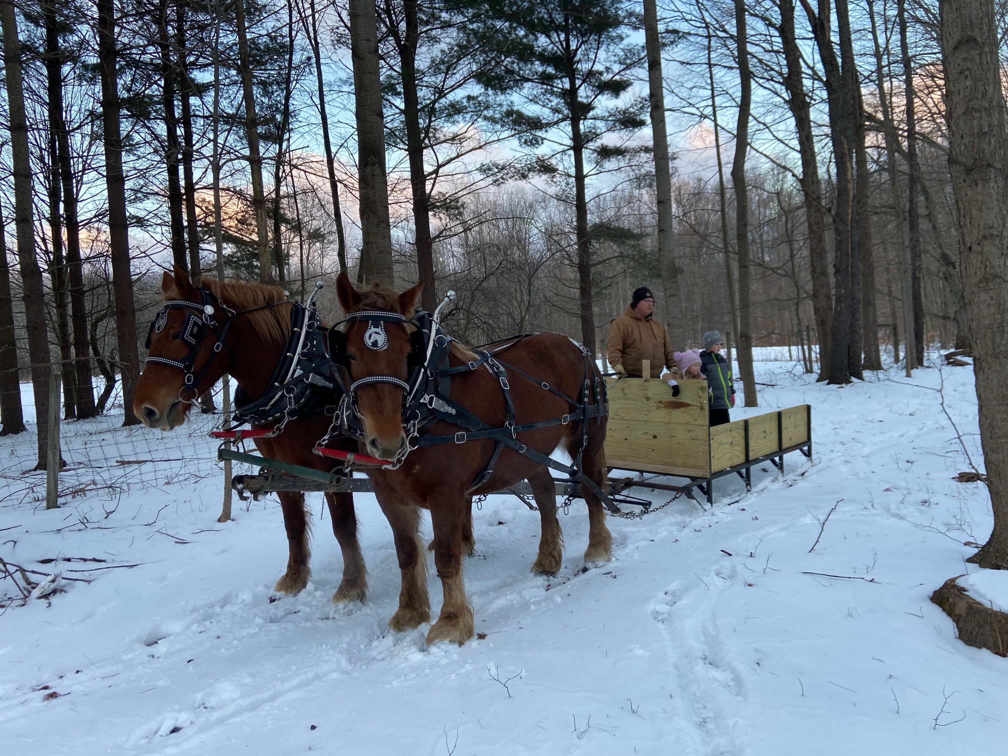 Cold is upon us. Winter has finally made itself known. The next several days are to be the coldest in the past two years. I am enjoying the frozen ground. One of my friend’s calls it, “God’s concrete”. We took advantage of the snow the other night to take a sled ride. The horses pulled the recently reworked sled with ease. I added high density plastic to the bottom of the runners. It slides extremely well now! The girls, Abby and Amee, pulled us effortlessly. It was fun albeit cold :o)