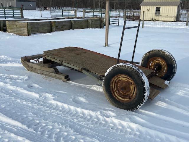 My friend Joel and I built a prototype sap gathering rig. It will be tried and tested in the woods very soon. It is a hybrid of sorts, having both sled runners and wheels. A sled works very well on snow or even mud, but it drags hard on our dry spring days. Sap must be gathered no matter what the soil conditions may be. It is my hope that this rig will get the job done and be a bit easier on the horses on those dry days.