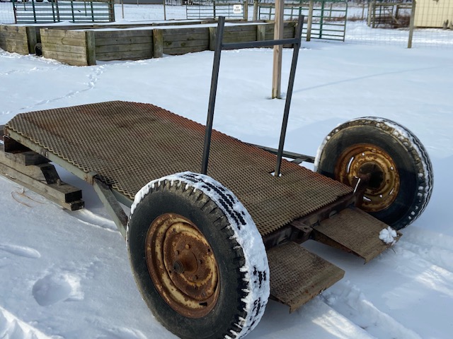 I will pull it through the woods and around the sap roads in the next few days. I want to see how it pulls and also make sure there are no surprises along the trail. You will notice the steps on the back for children and old men with bad knees. My handrail also is a help when riding through the woods. I still have to put a tongue on the rig, but it is mostly ready to go.