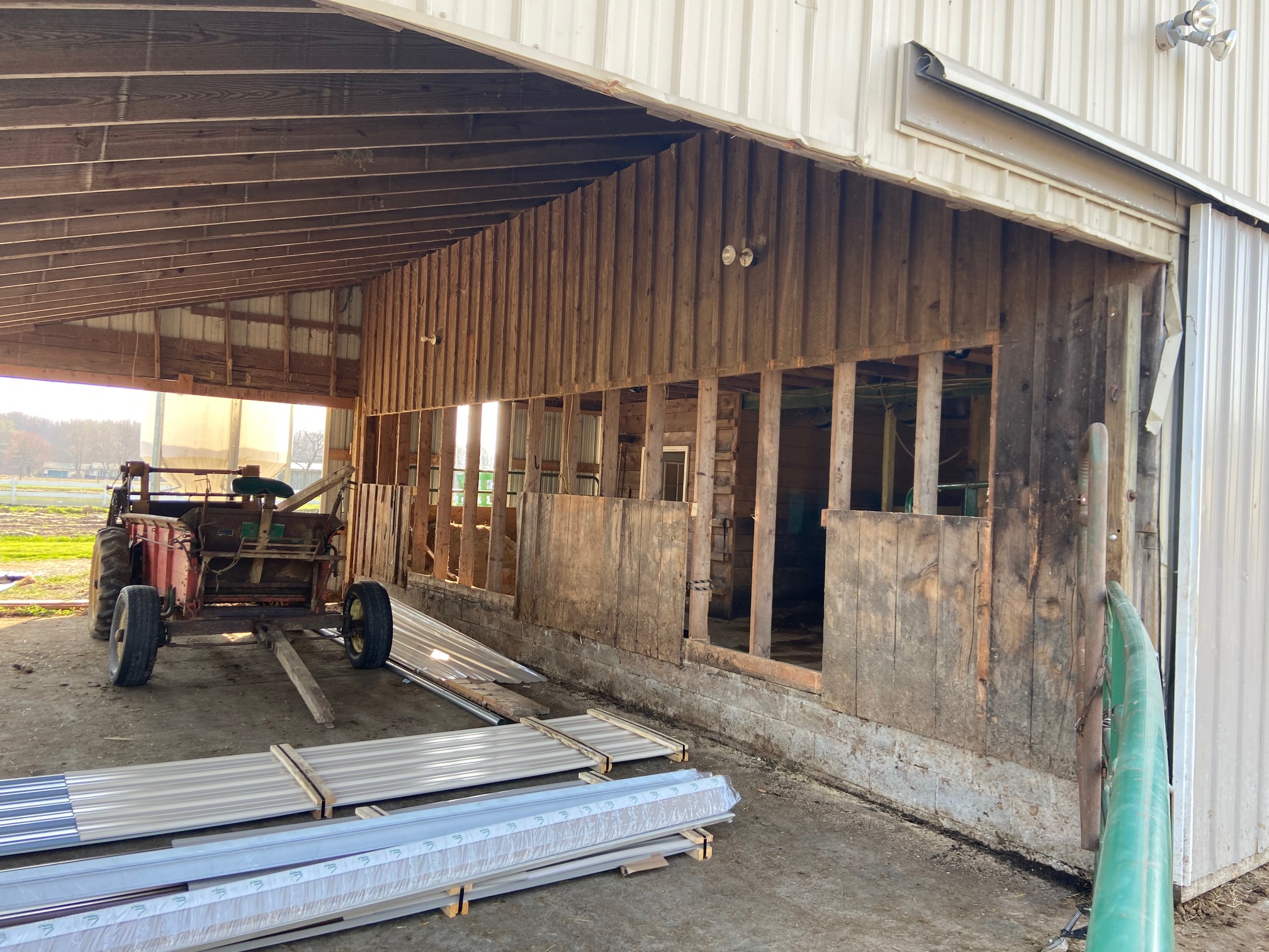 I am also making changes to our east overhang. This has been a run-in shed for cattle and sheep for 21 years. I have decided to house those animals in other areas around the farm. This will allow for big roomy box stalls to be built under the overhang. We need them for our Suffolk mares and foals. The barns footprint won’t change, but its usefulness will be much enhanced.
