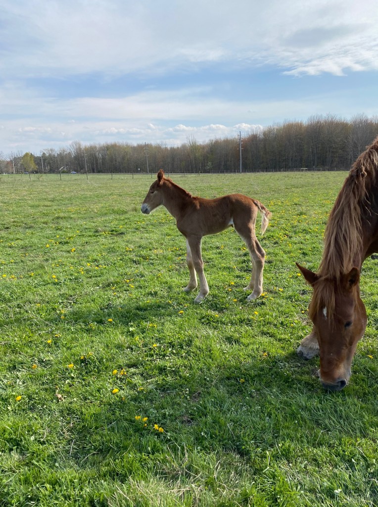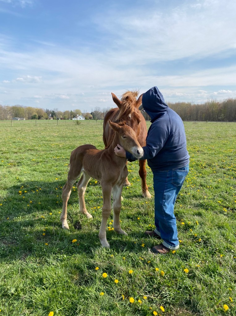 My grandma Rice was named Grace. She was a strong woman with a big heart. It is my hope that this filly exhibits those same traits. Enjoy the photos for now and stay tuned for updates. I’m overloaded with thankfulness for this potential broodmare. She is not related to our stallion prospect Hank. It is one more important step in helping to promote and preserve this rare and endangered breed. I think gramma would be proud to have her share her name.