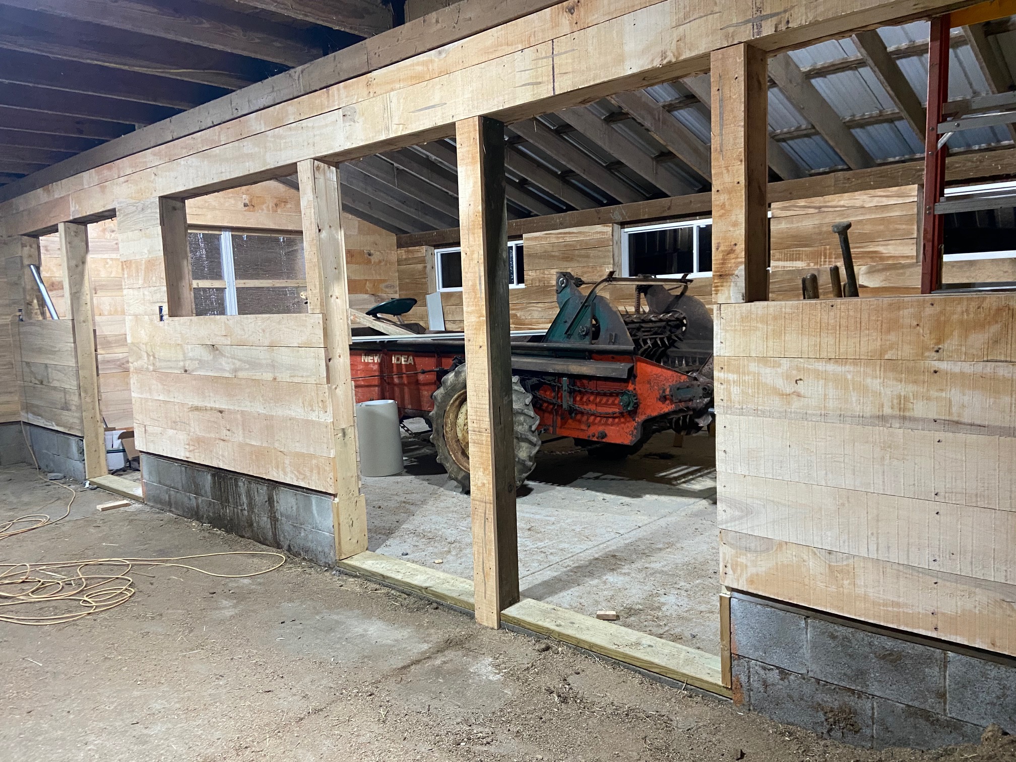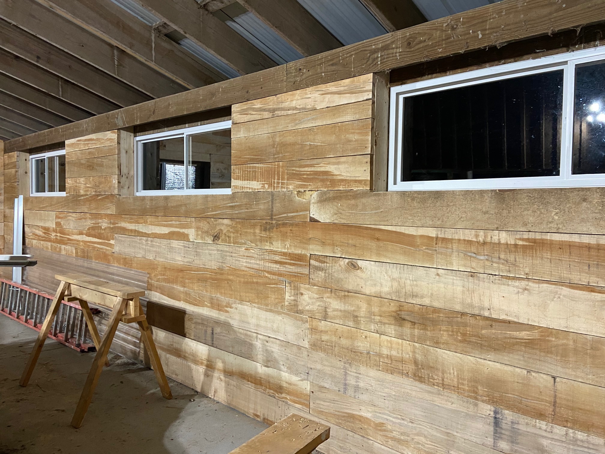 Each new box stall will have its own window for light and air movement. Native hardwood planks ensure safety and durability for the stalls.