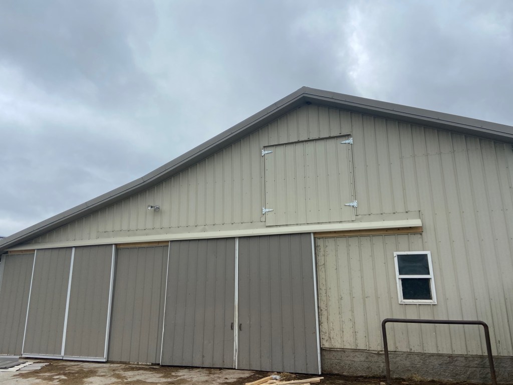 My work on our horse barn continues. The new hay mow doors are on and finally weather tight! The large door is made that way on purpose to allow for putting big round bales in there. A labor saving job, that requires only our skid steer and one other guy.
